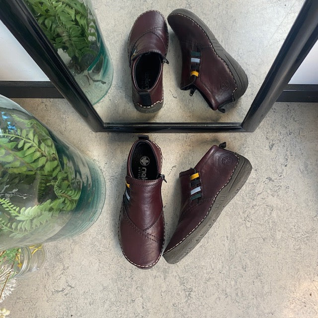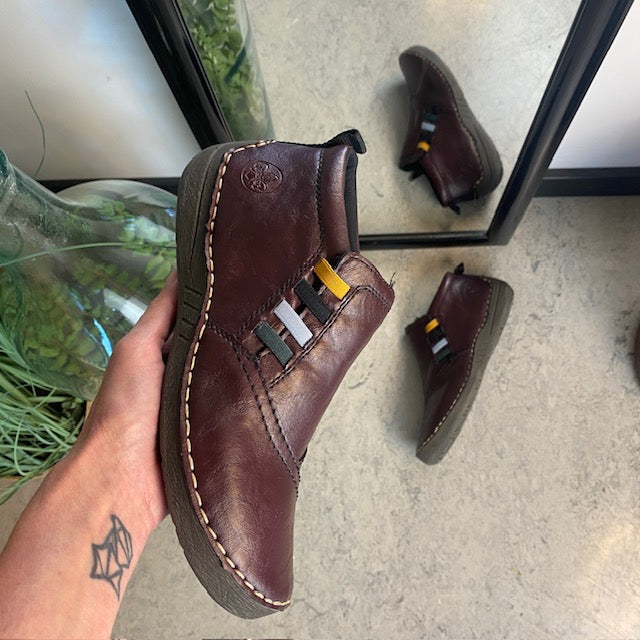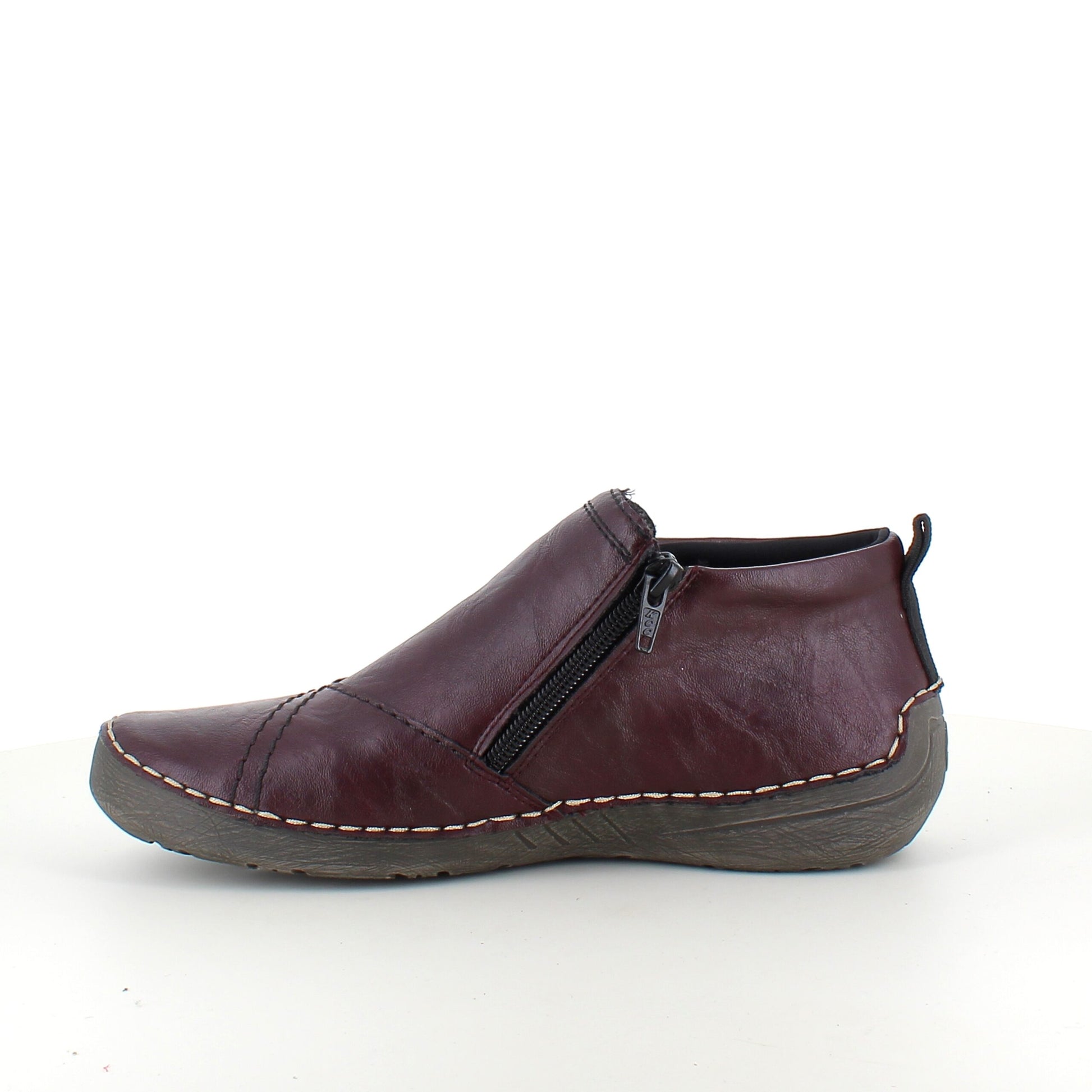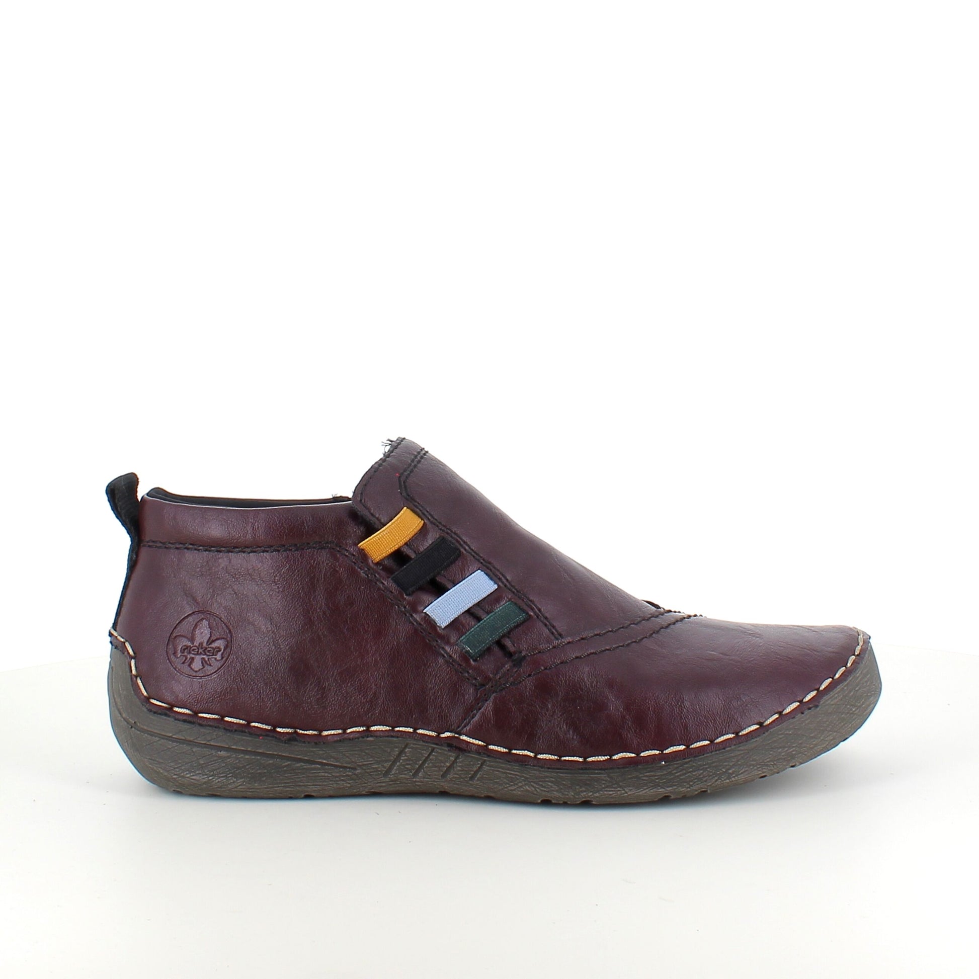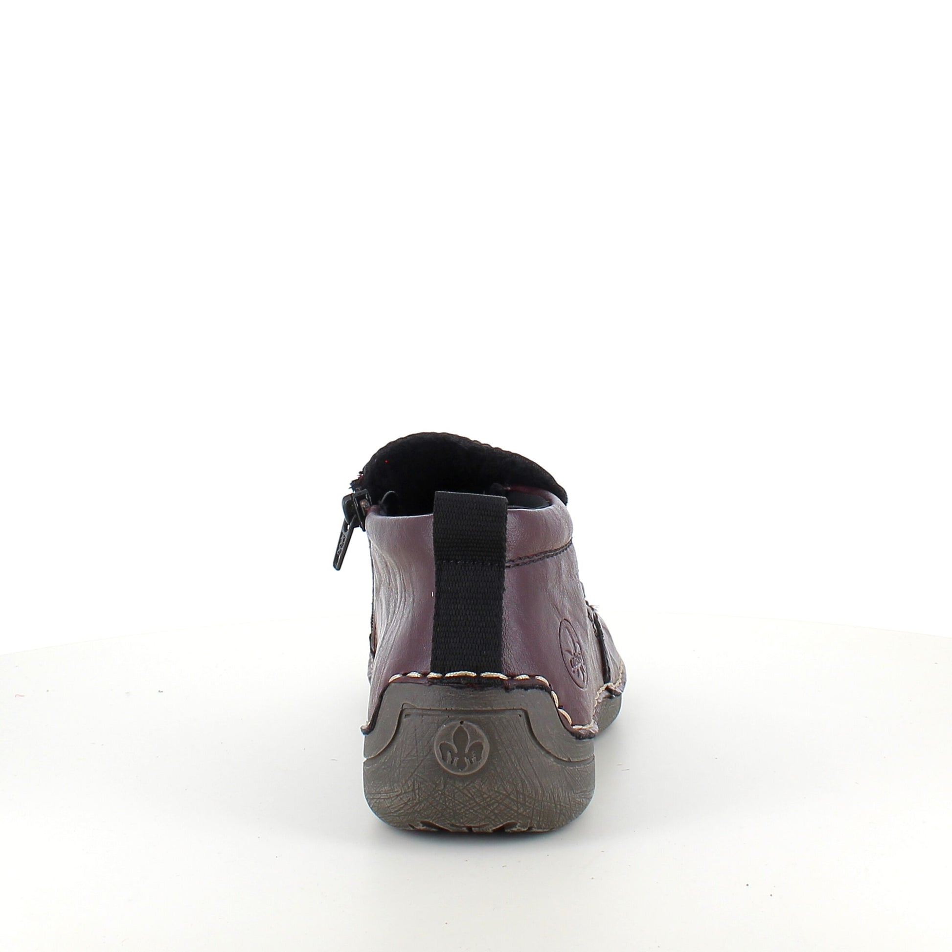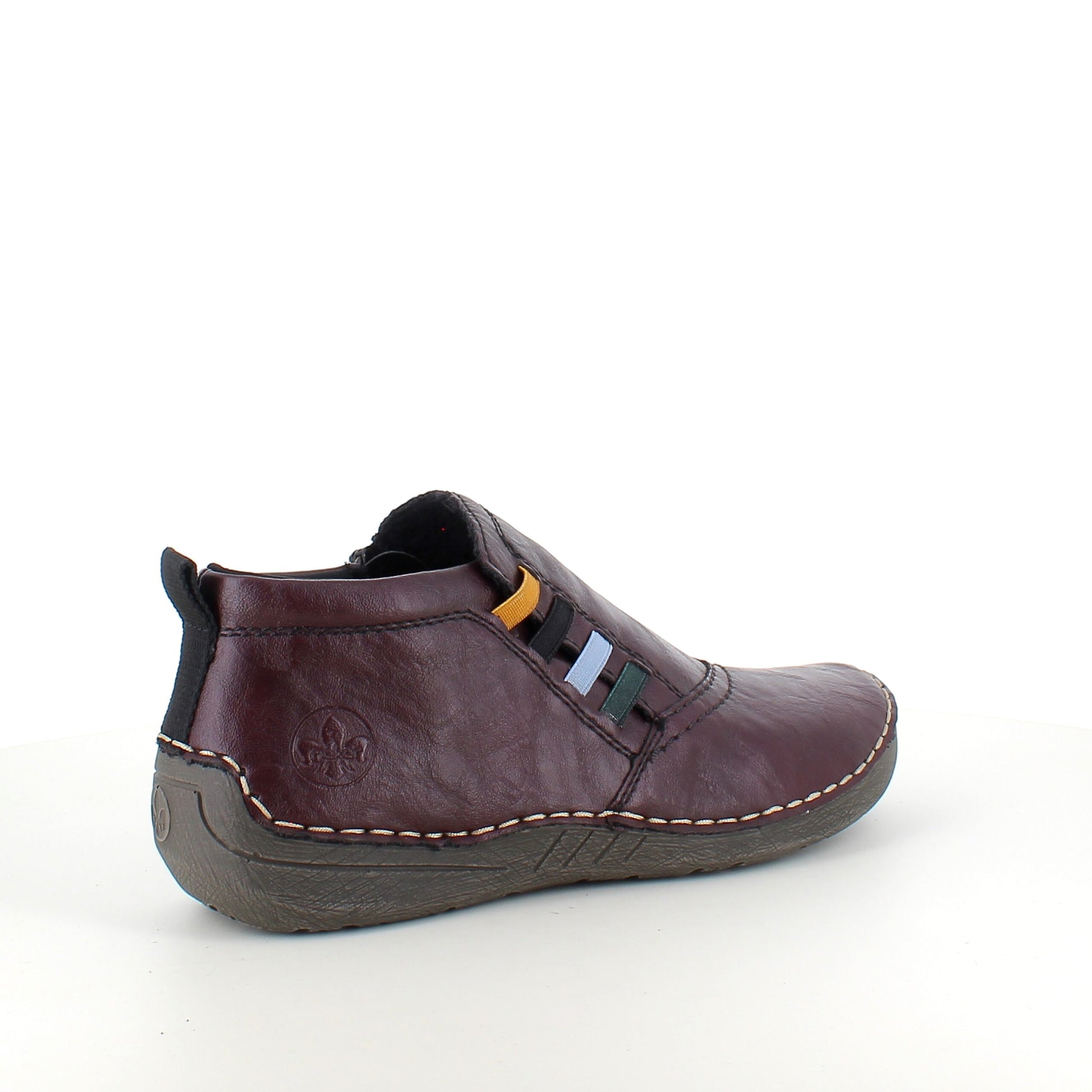 Kort bordeuxfarvet støvle fra Rieker med flotte detaljer