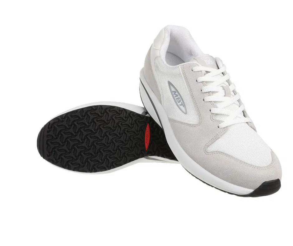 MBT 1997 White er mere end bare en sko; den er et statement om komfort og stil. Den unikke sålkonstruktion, kendt som 1997, træner din balance, øger blodomløbet og forbedrer din kropsholdning. Med funktioner såsom aflastning af led, aktivering af muskler og forbedring af kropsholdning, er denne sko designet til at optimere din hverdag.