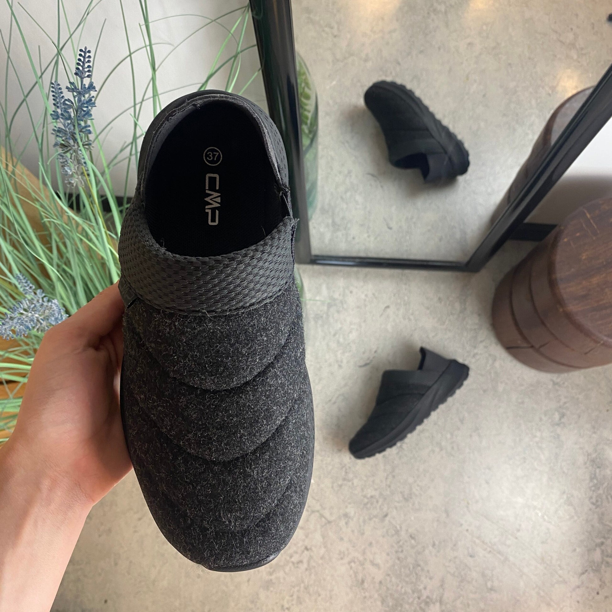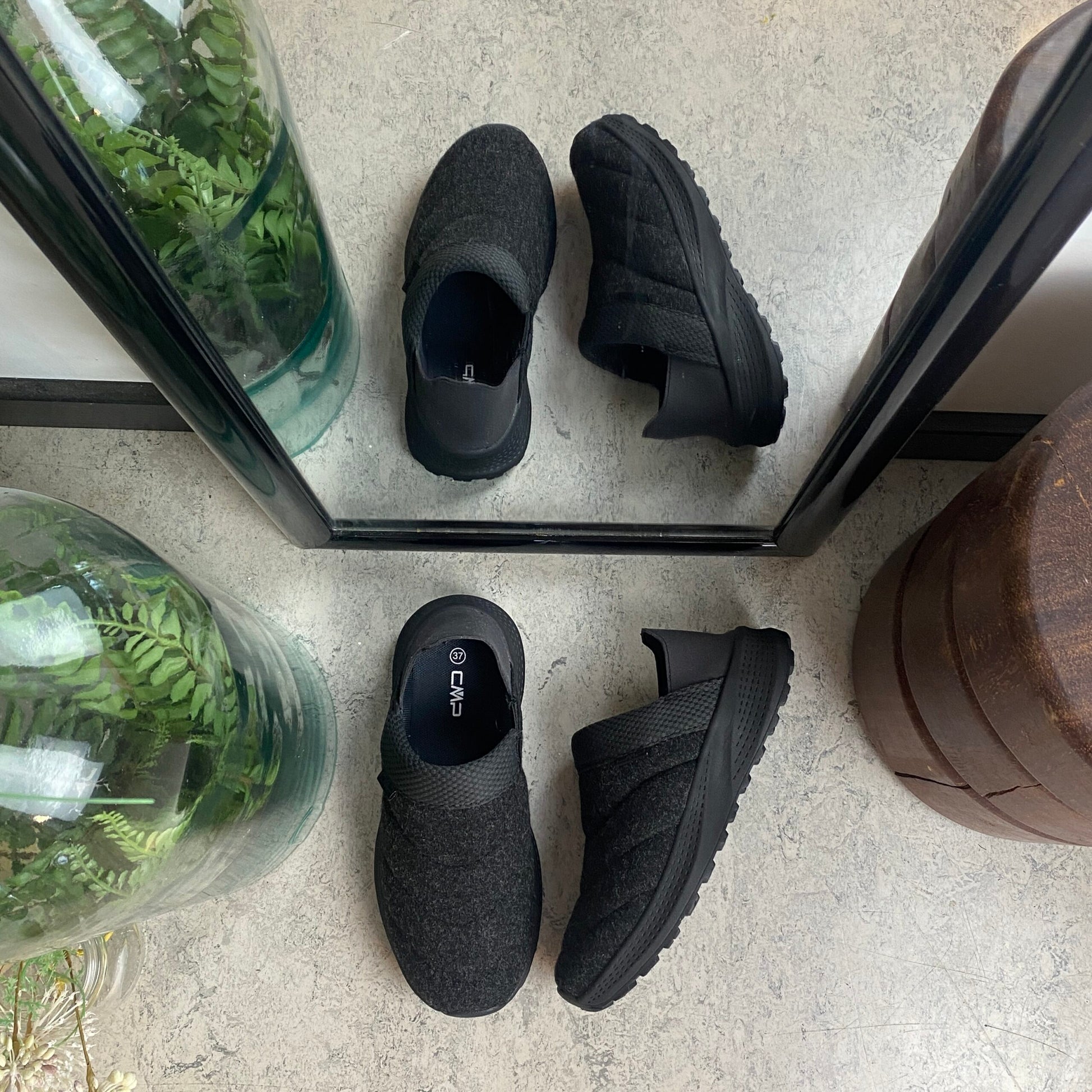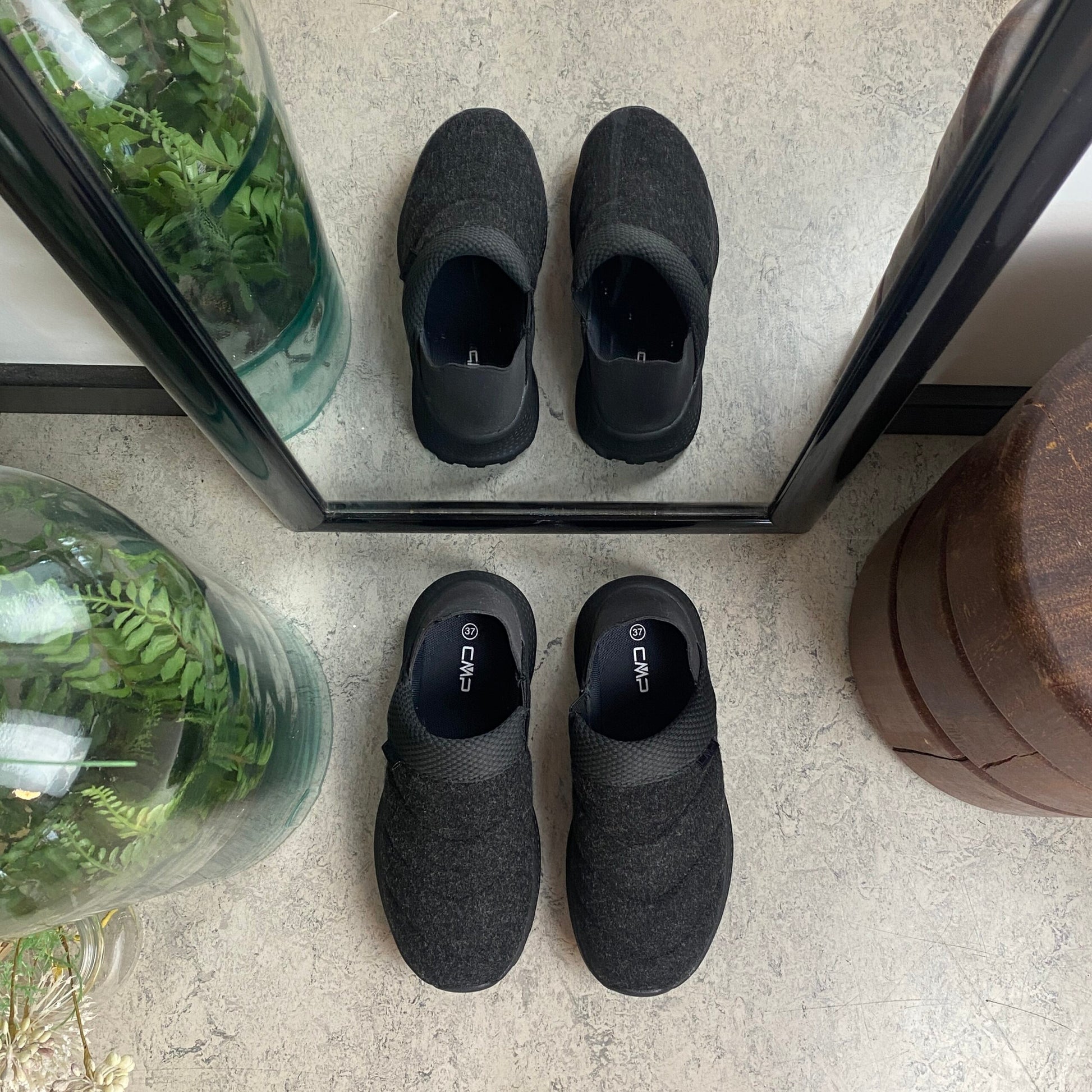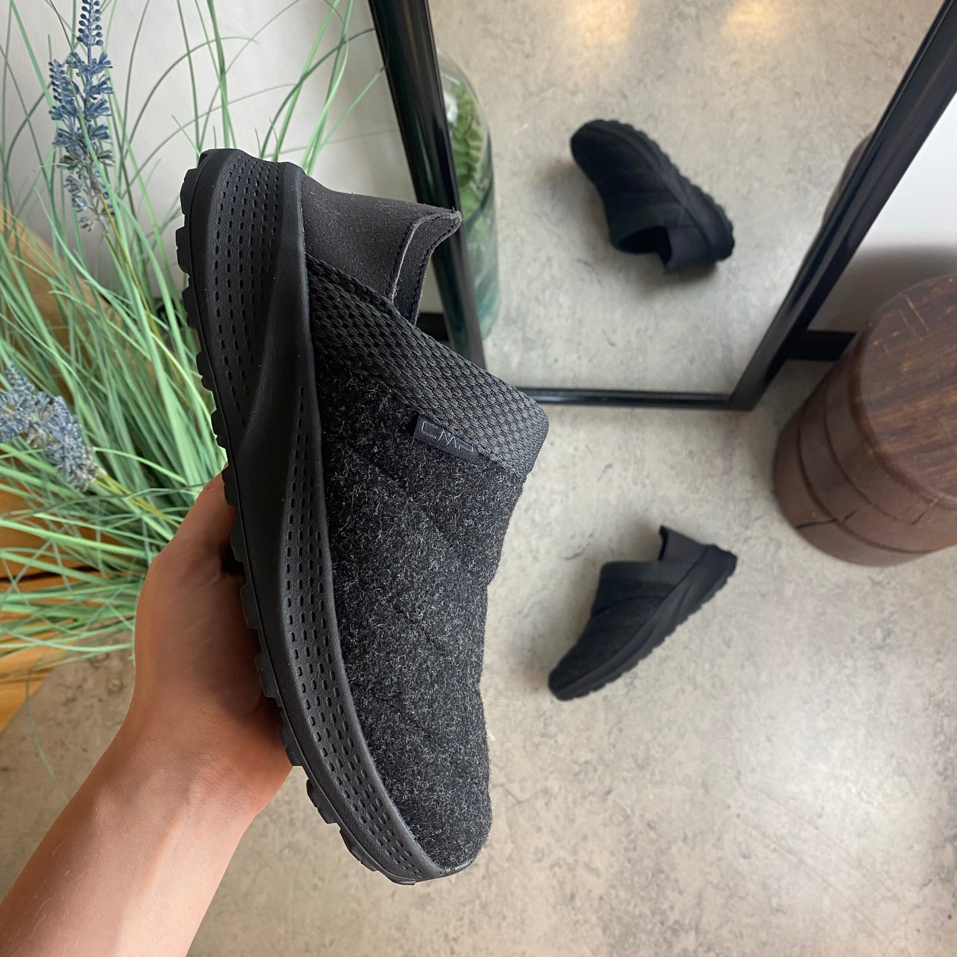 Hjemmeskoen er lavet i blød filt og giver en behagelig, varm og fleksibel pasform.