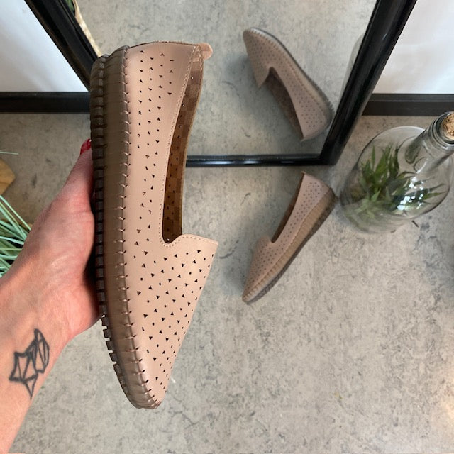 Beige ballerinasko med fint, perforeret mønster
