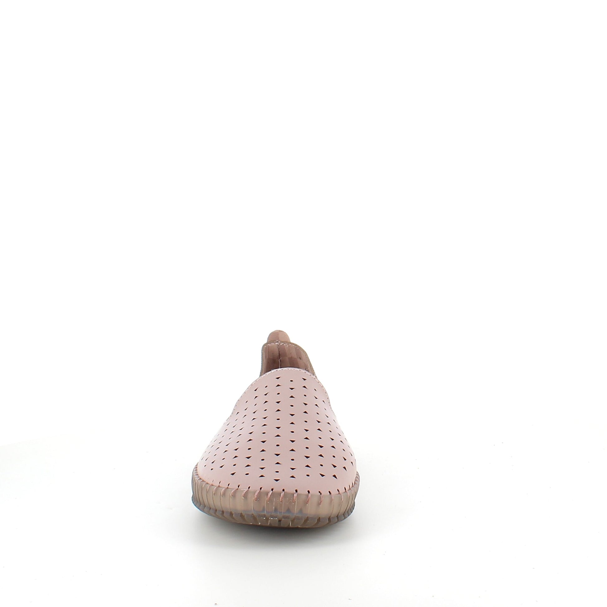 Beige ballerina med glat overdel, perforeret i et elegant mønster.