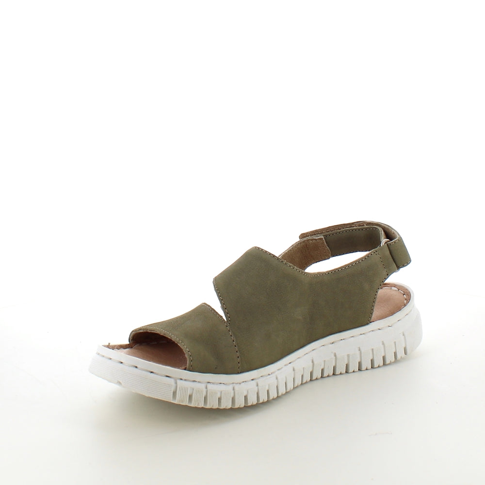 Flot grøn skindsandal fra Relaxshoe med to faste remme over forfoden