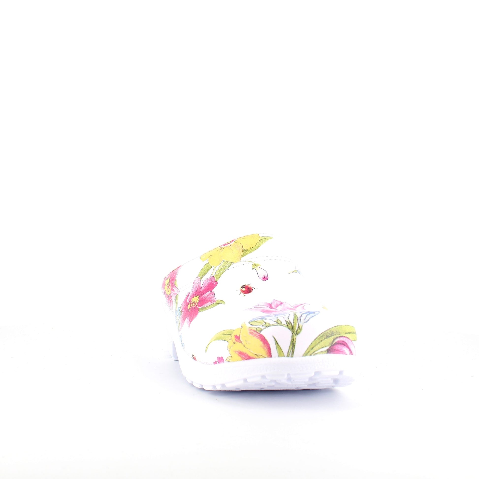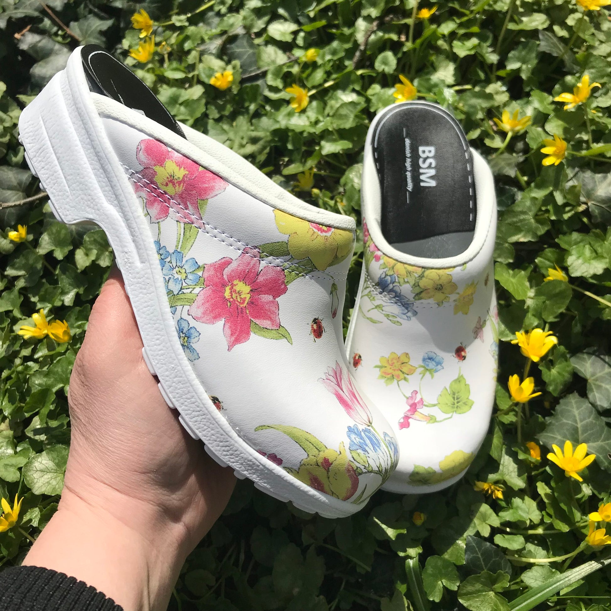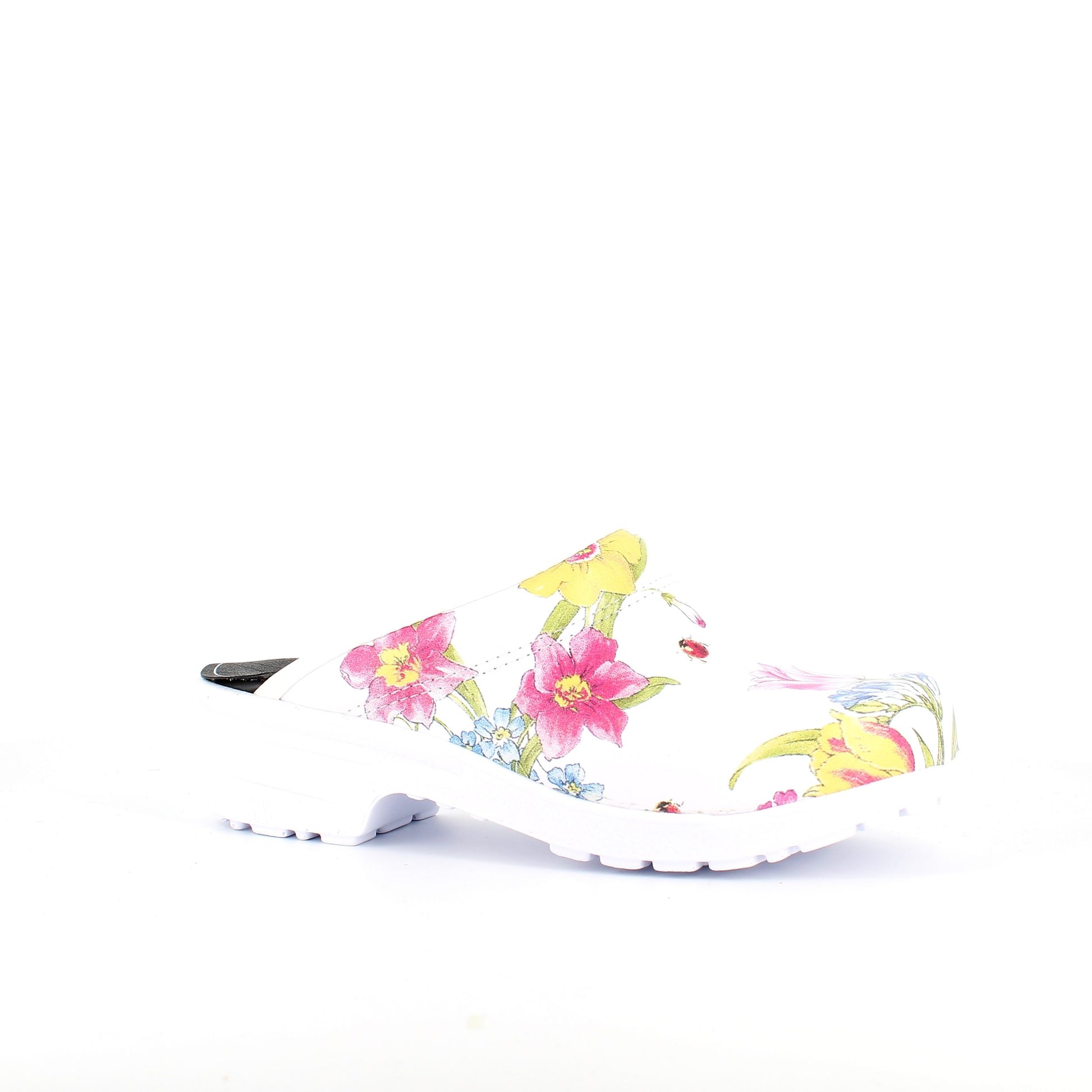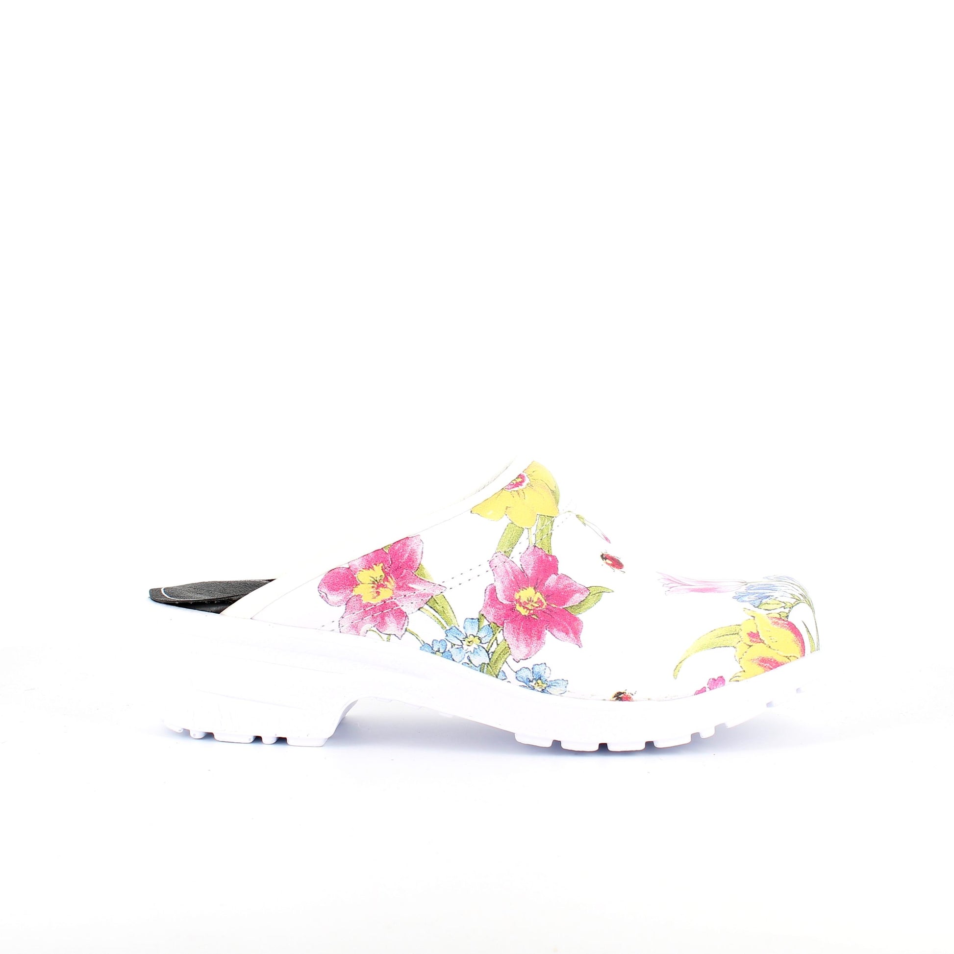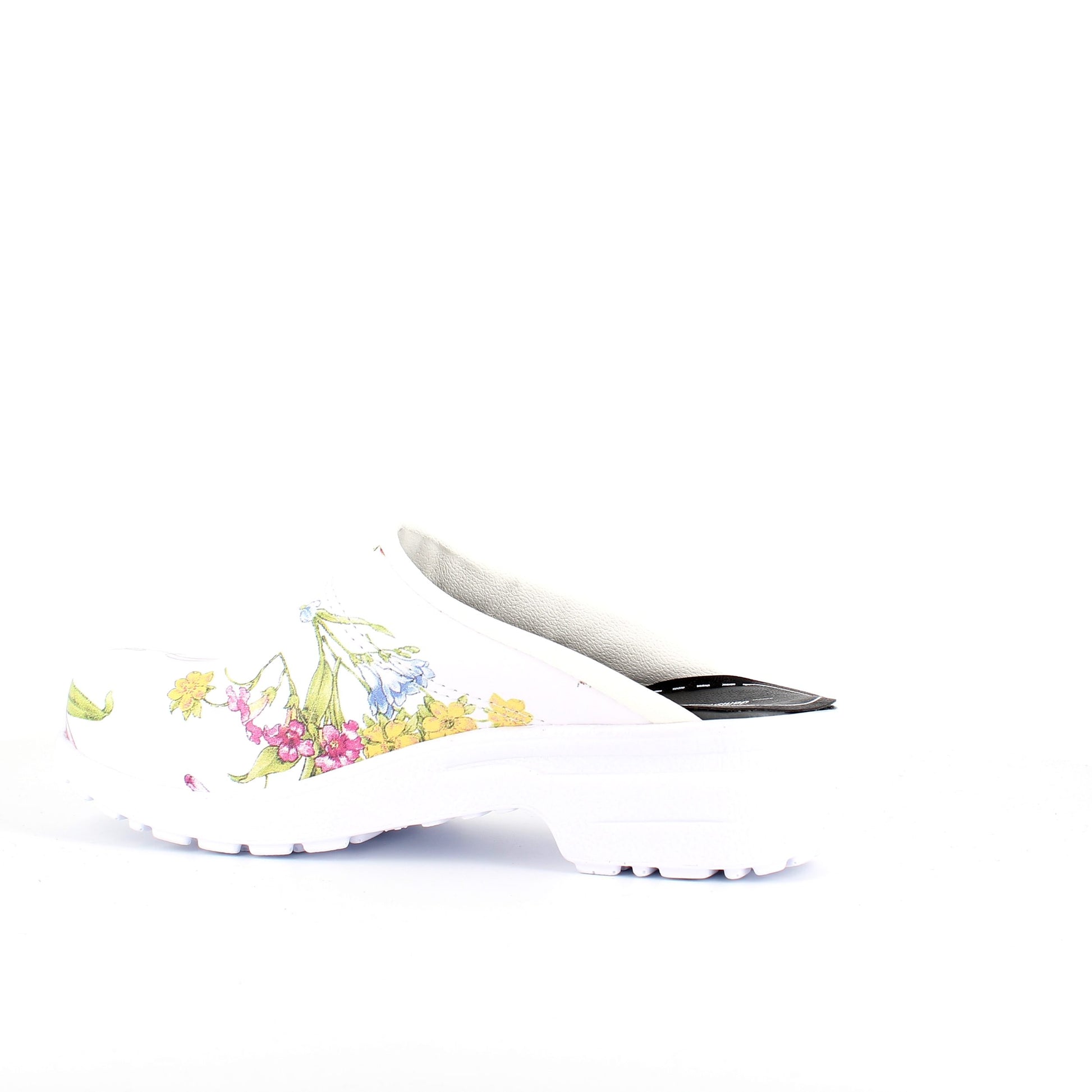 Hvid blomstret træsko i Dansk kvalitet uden kap.