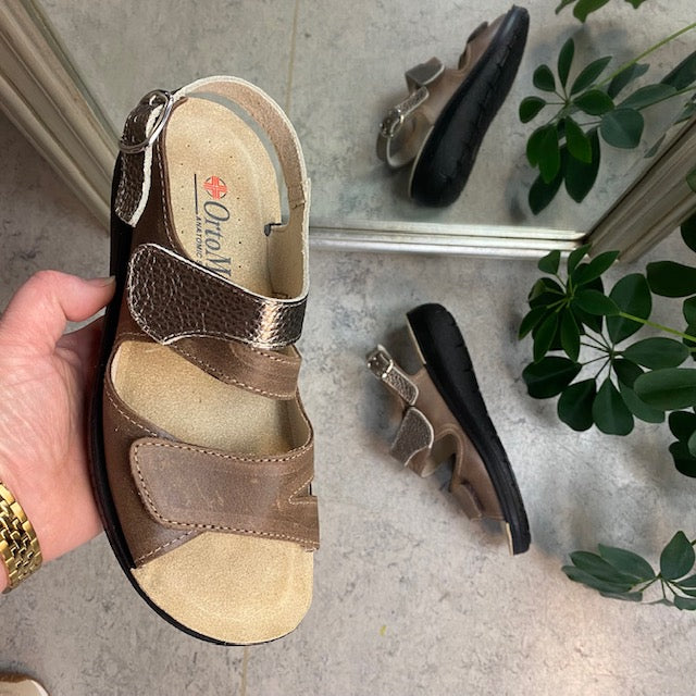 Bred ortopædisk sandal i beige med velcro i forfod.