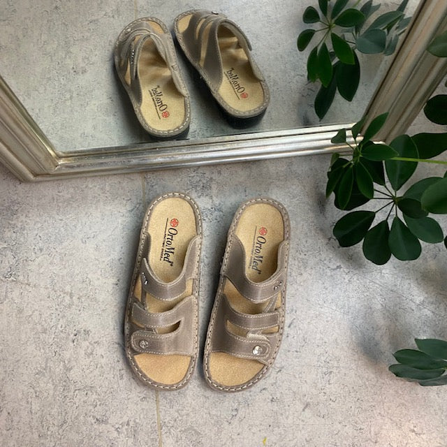 Sandalen har såler som har svangstøtte.Dette er en ortopædisk sko.