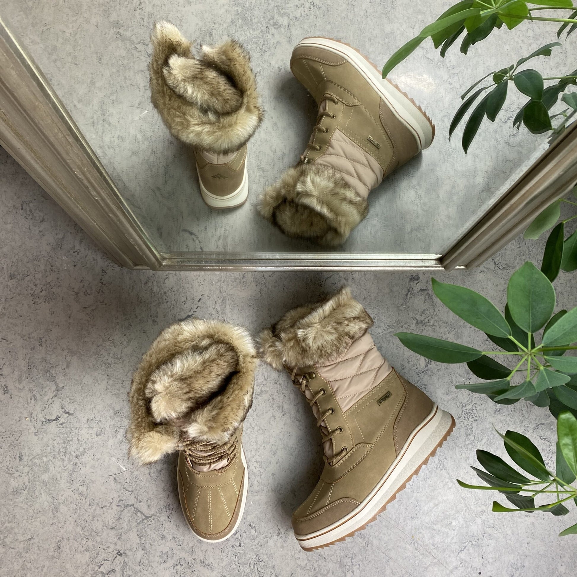 Brun vandtæt vinterstøvle fra Mols med pels kant