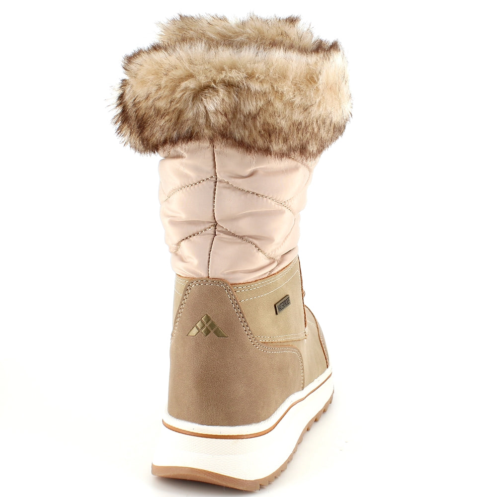 Brun vinterstøvle fra Mols, designet med vandtætning og pelskant, tilbyder både stil og komfort.