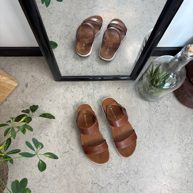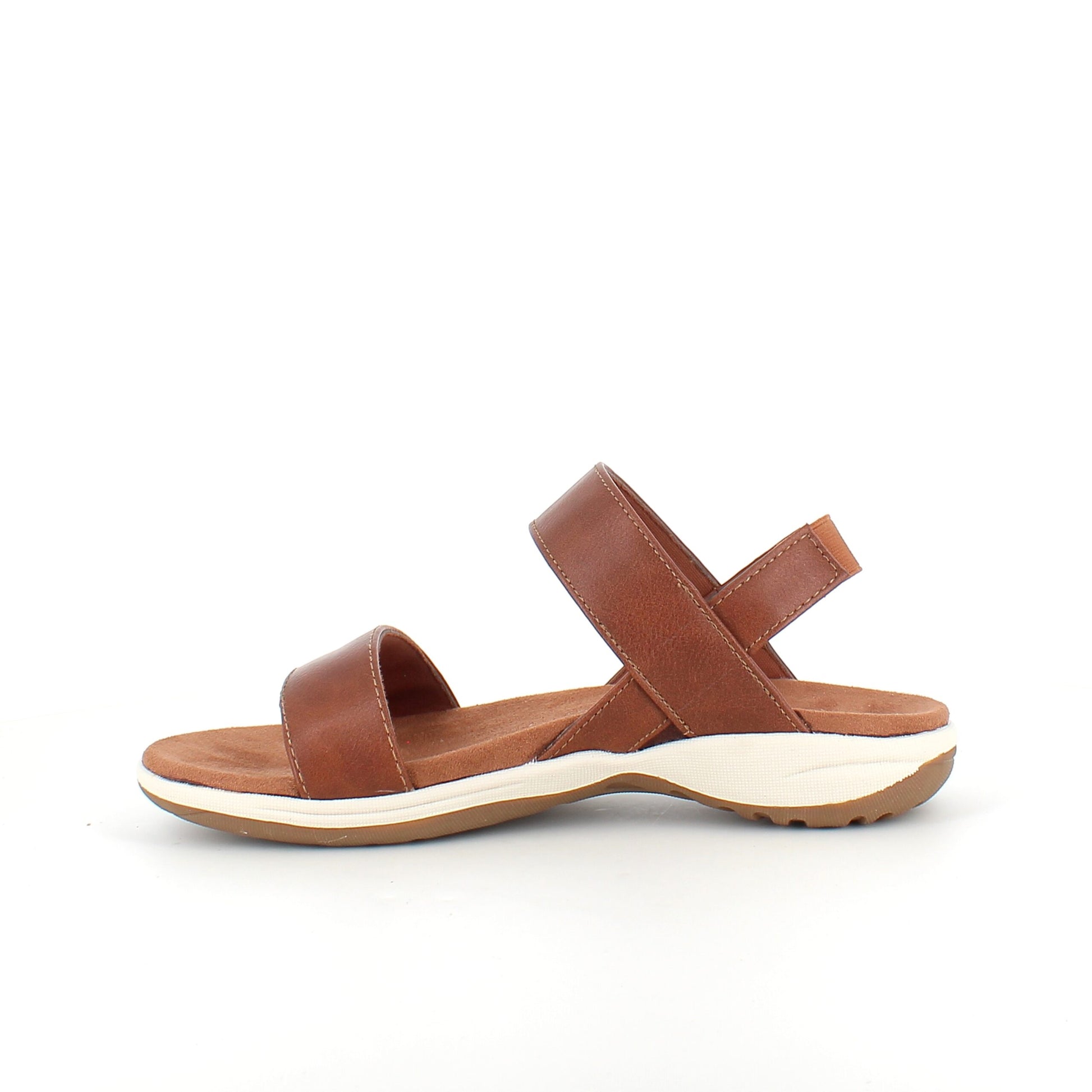 Denne brune sandal har svangstøtte og en elastisk hælrem for optimal pasform.