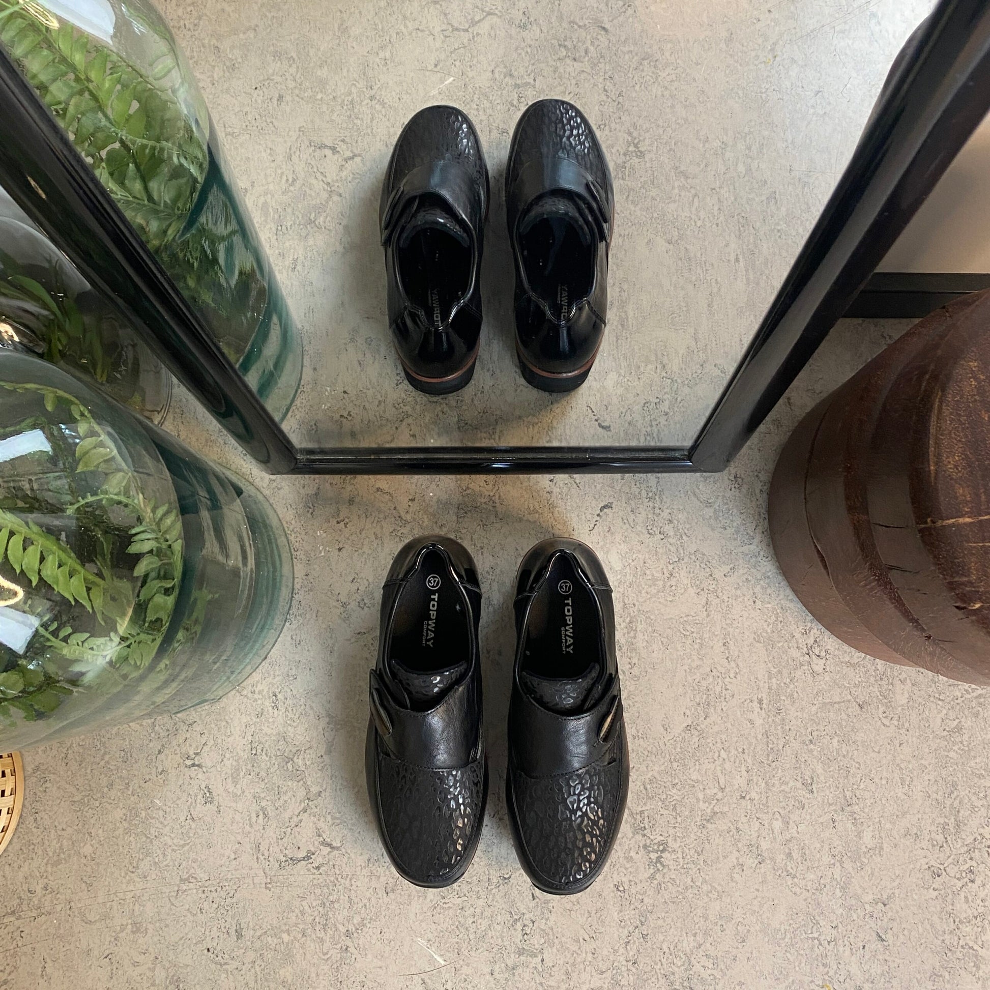 Den har en lav kilehæl som giver god komfort og sikre stabilitet.
