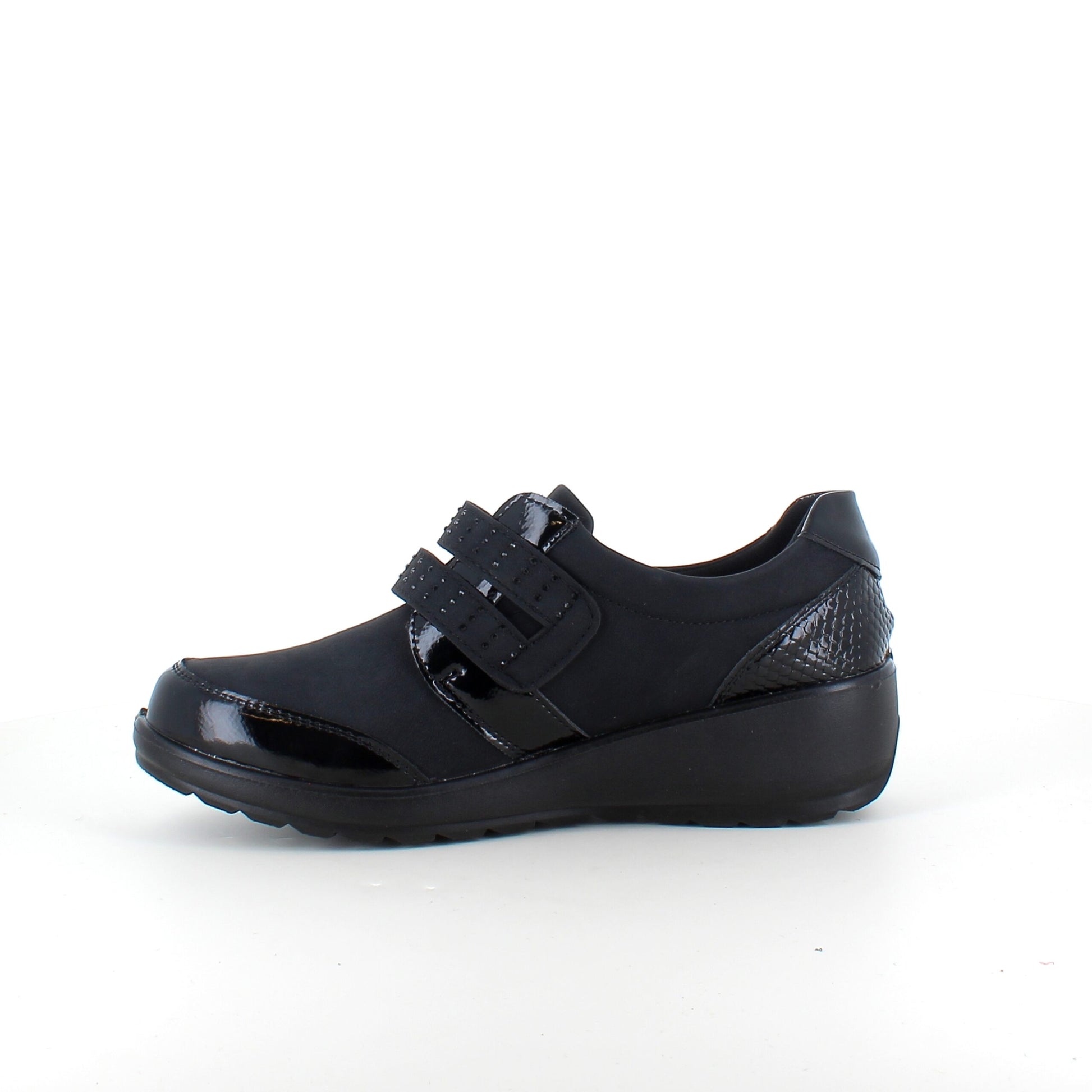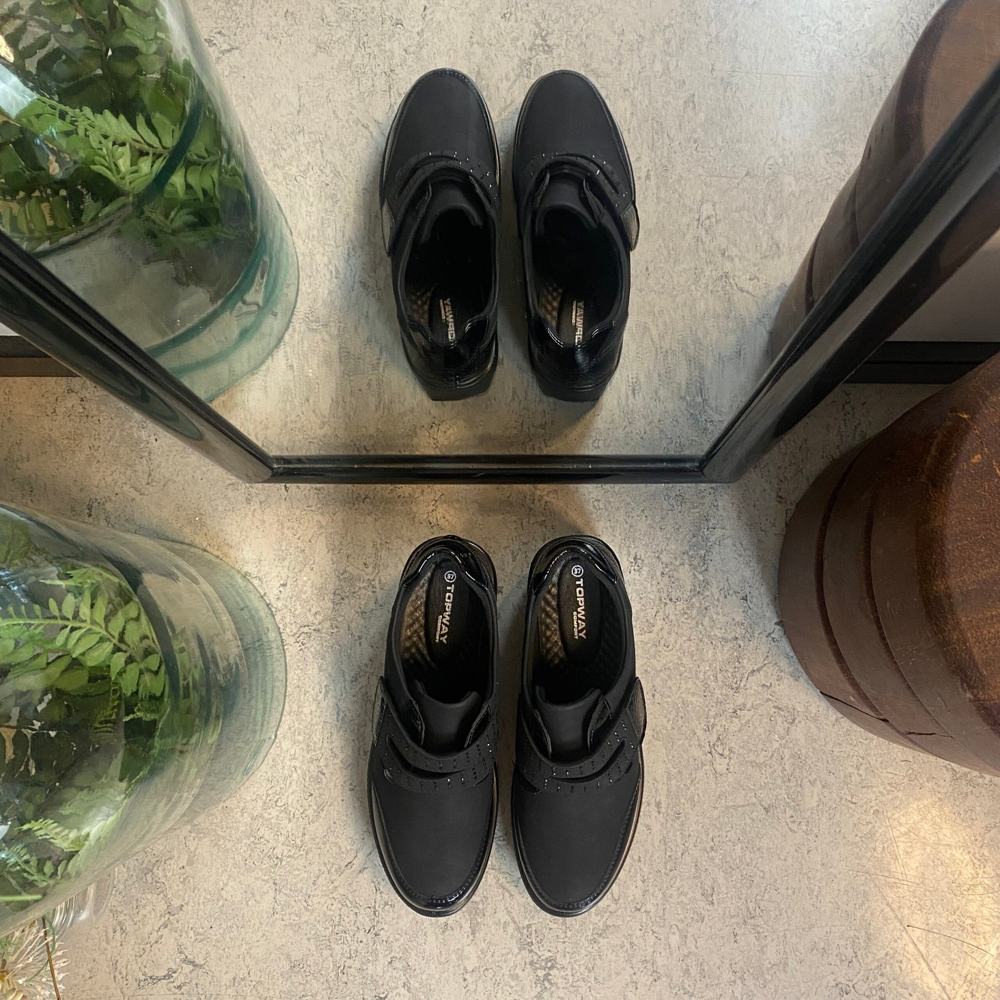 Skoen har en praktisk velcroåbning og en udtagelig blød skumsål.
