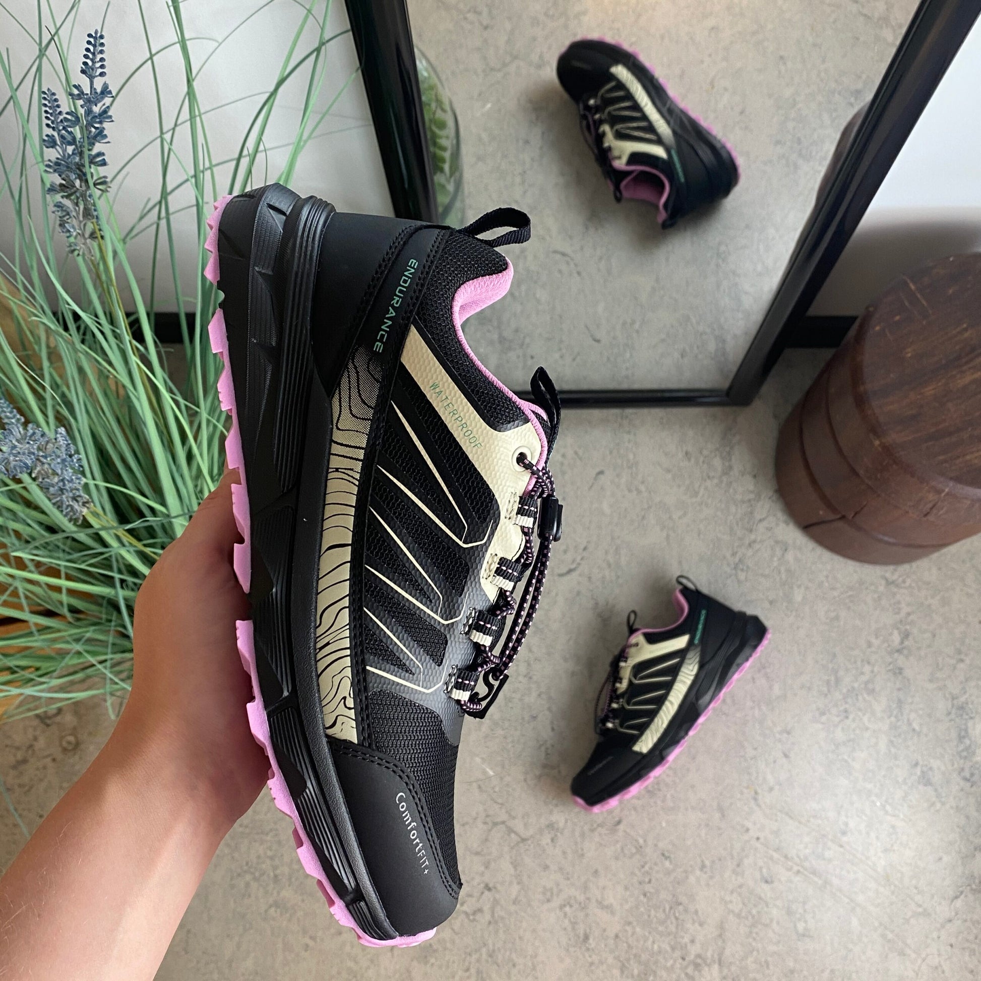 Endurance vandtæt sko i sort med stødabsorberende sål