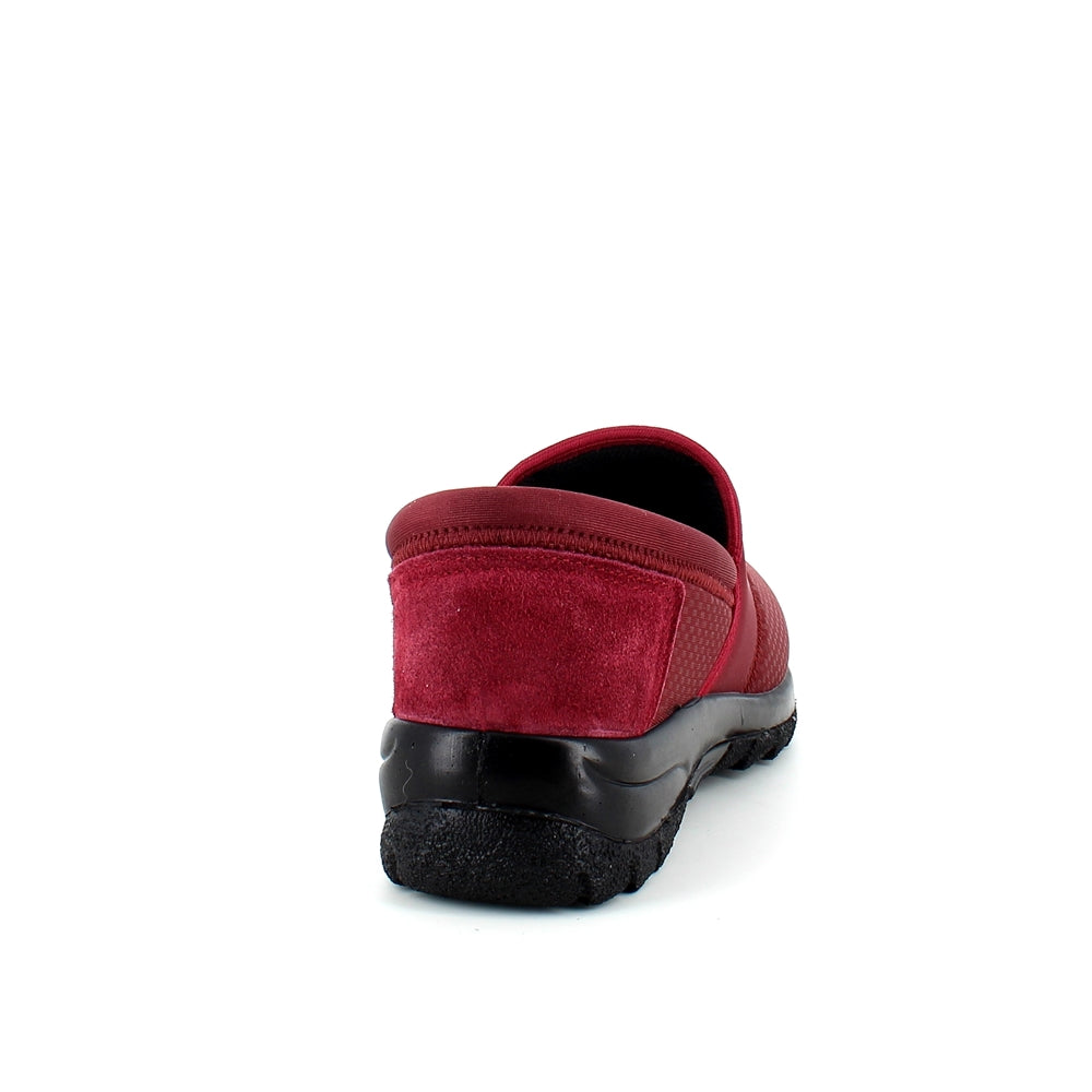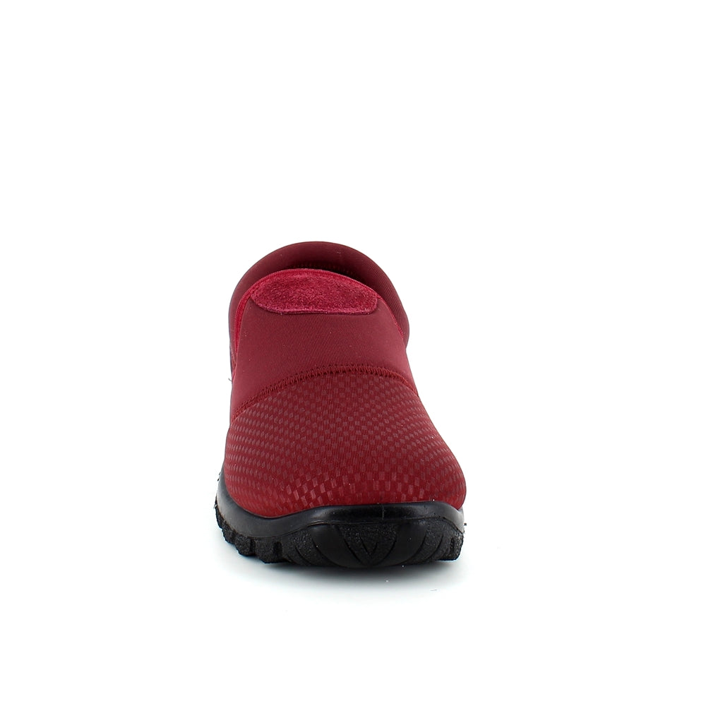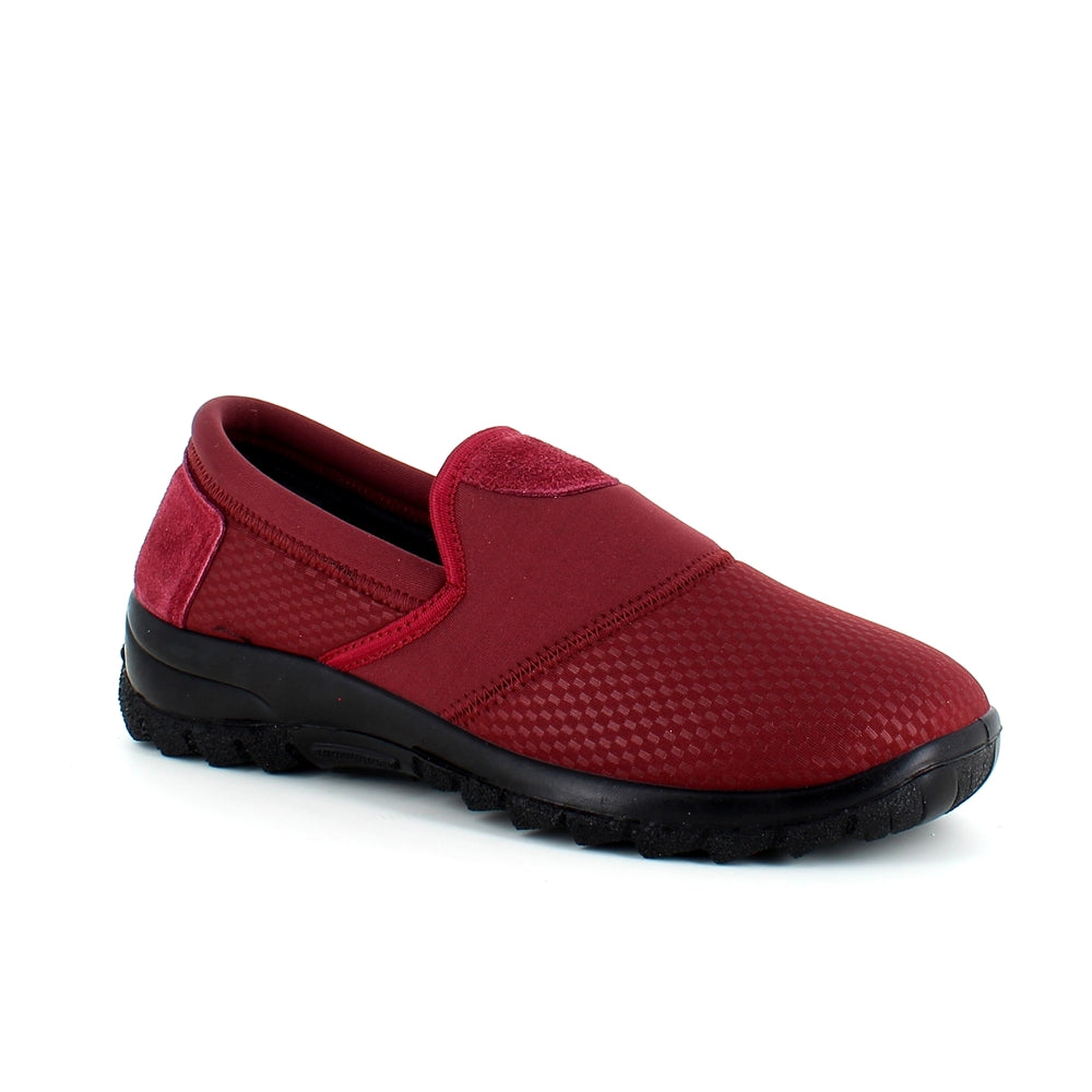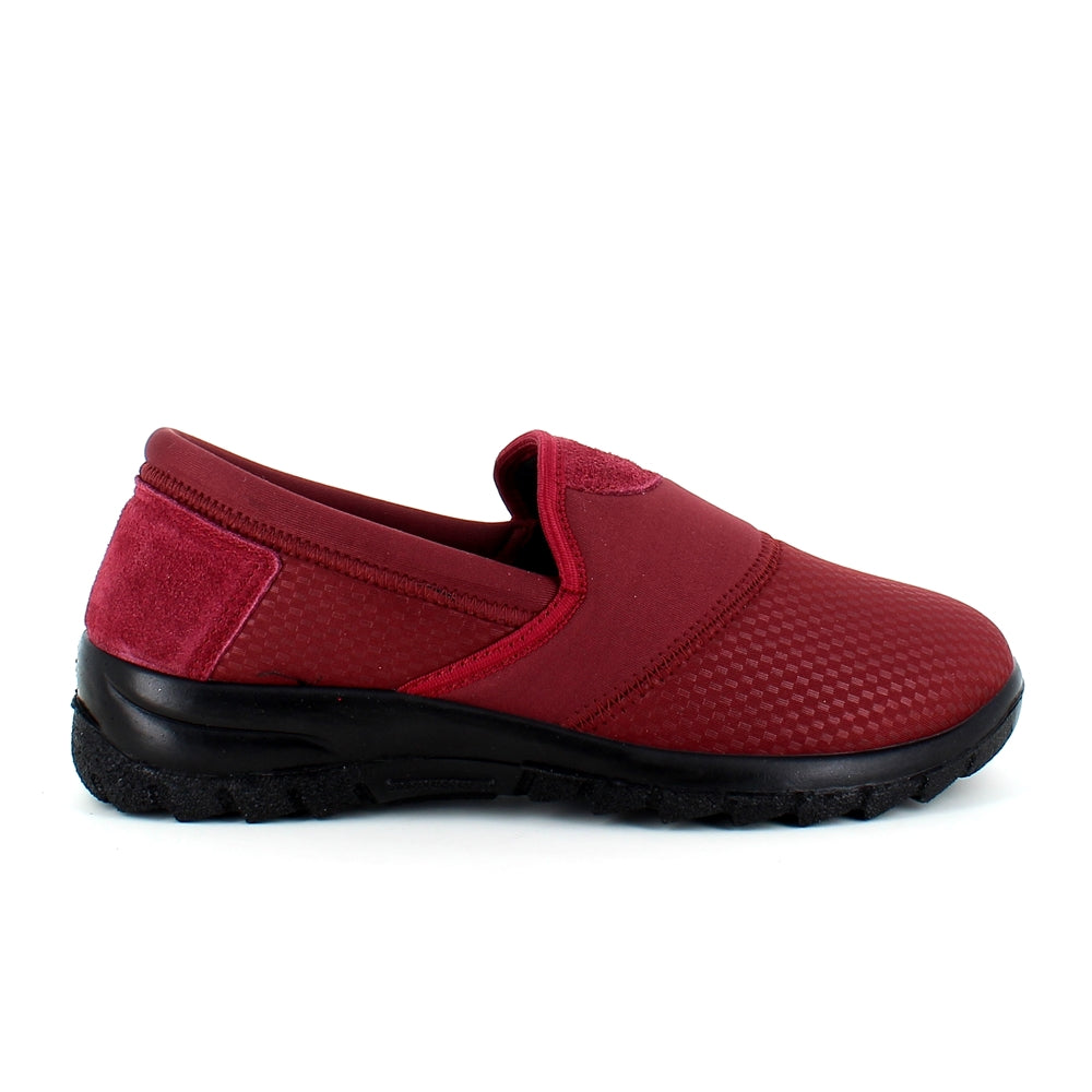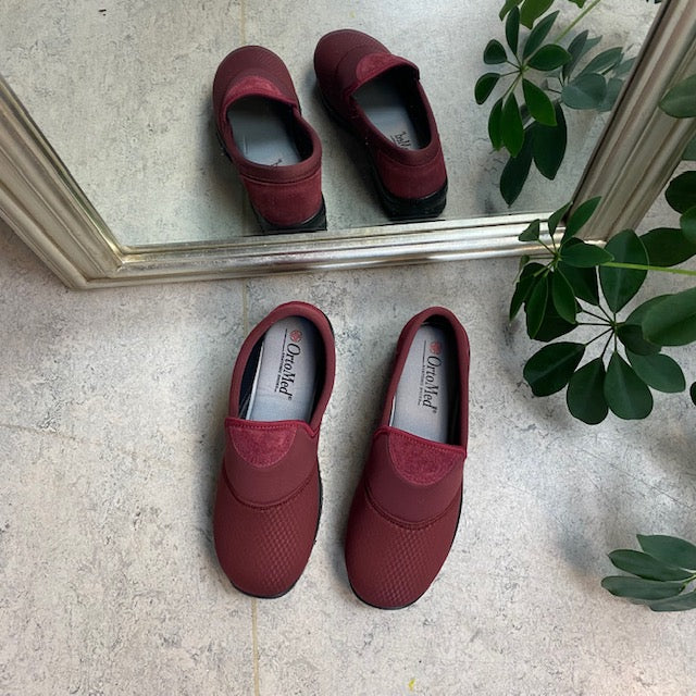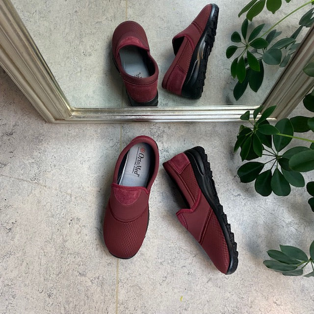 Sko i bordeaux med skind detaljer og en meget bred pasform.