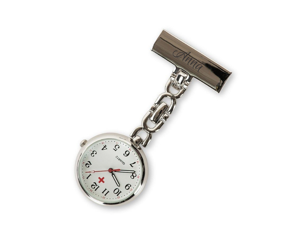 Sygeplejeur med fin kæde- Kæden er smykkelignende. Fåes i tre versioner - en version med hvid urskive, en med selvlysende urskive og en med perlemorsurskive.