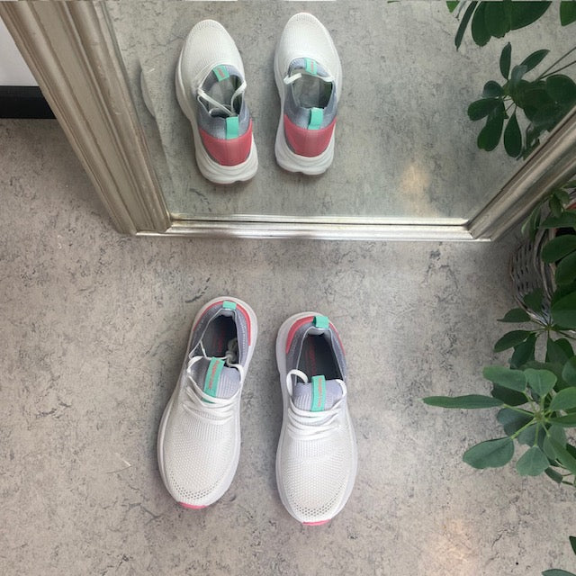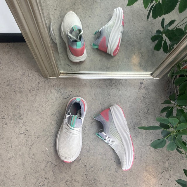Grå/hvid åndbar slip on sko med stødabsorbering