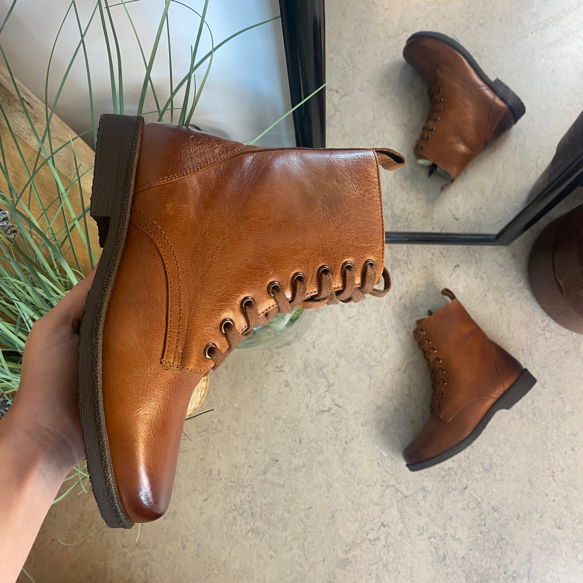 Støvlen er nem at komme i, takket være lynlåsen på indersiden, derudover kan du tilpasse støvlen til netop din fod ved hjælp af snørebåndene.