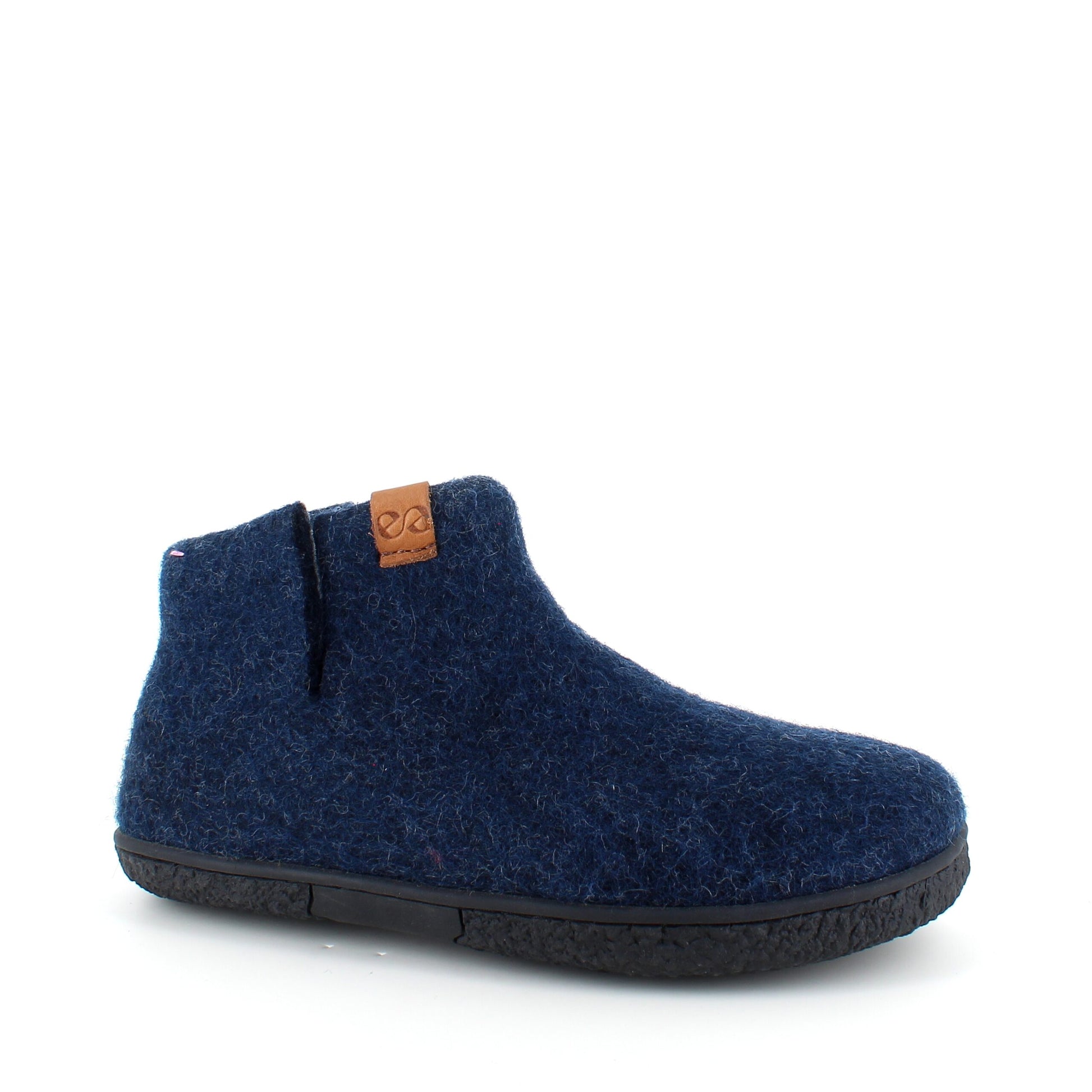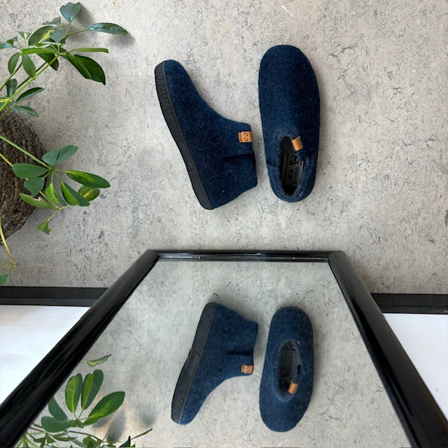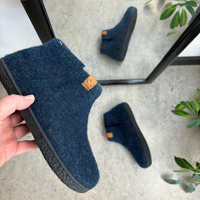 Høj marineblå hjemmesko i uld med skridhæmmende såler fra Green Comfort