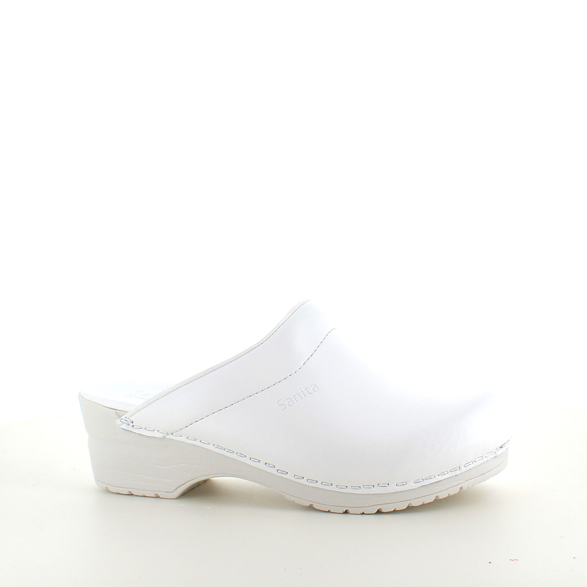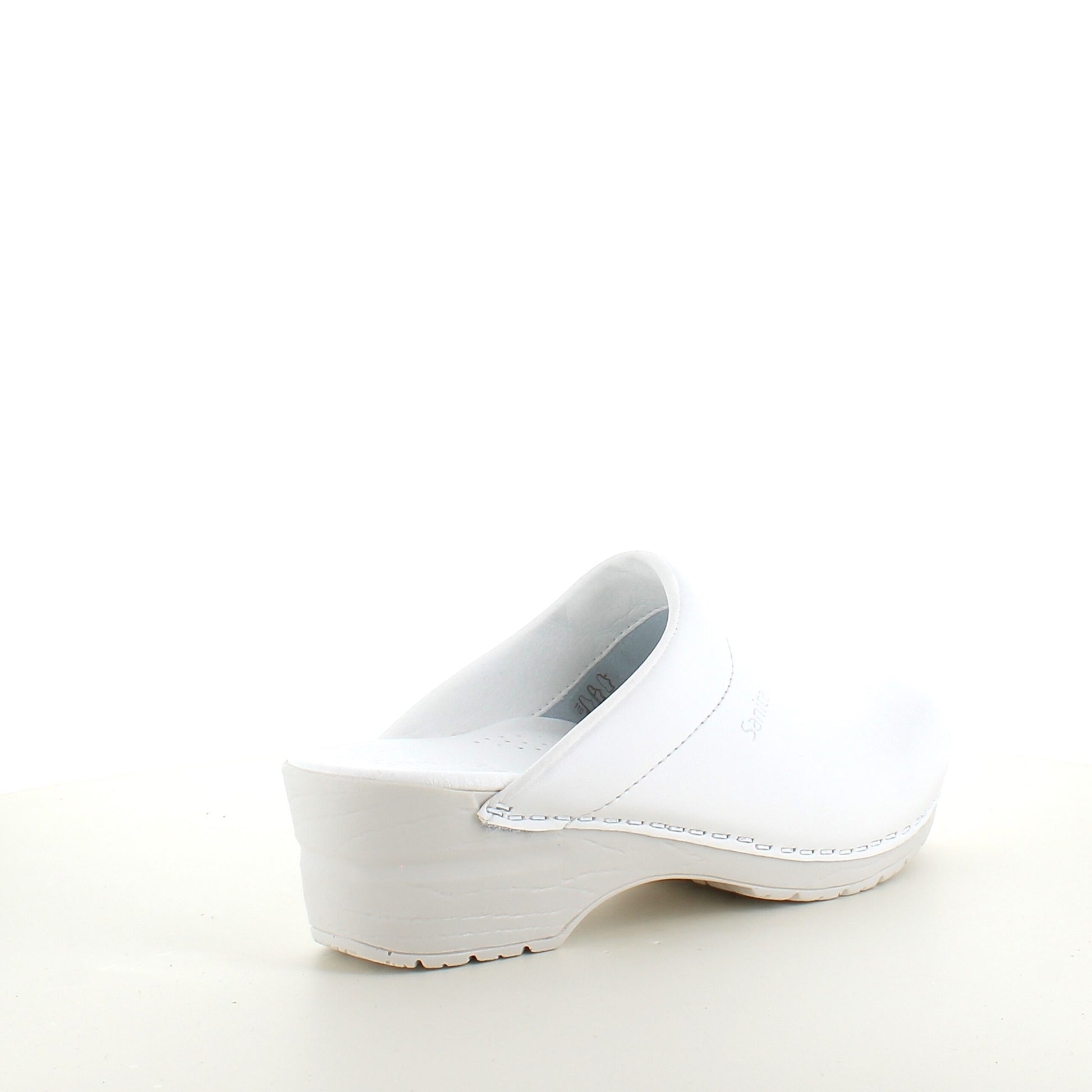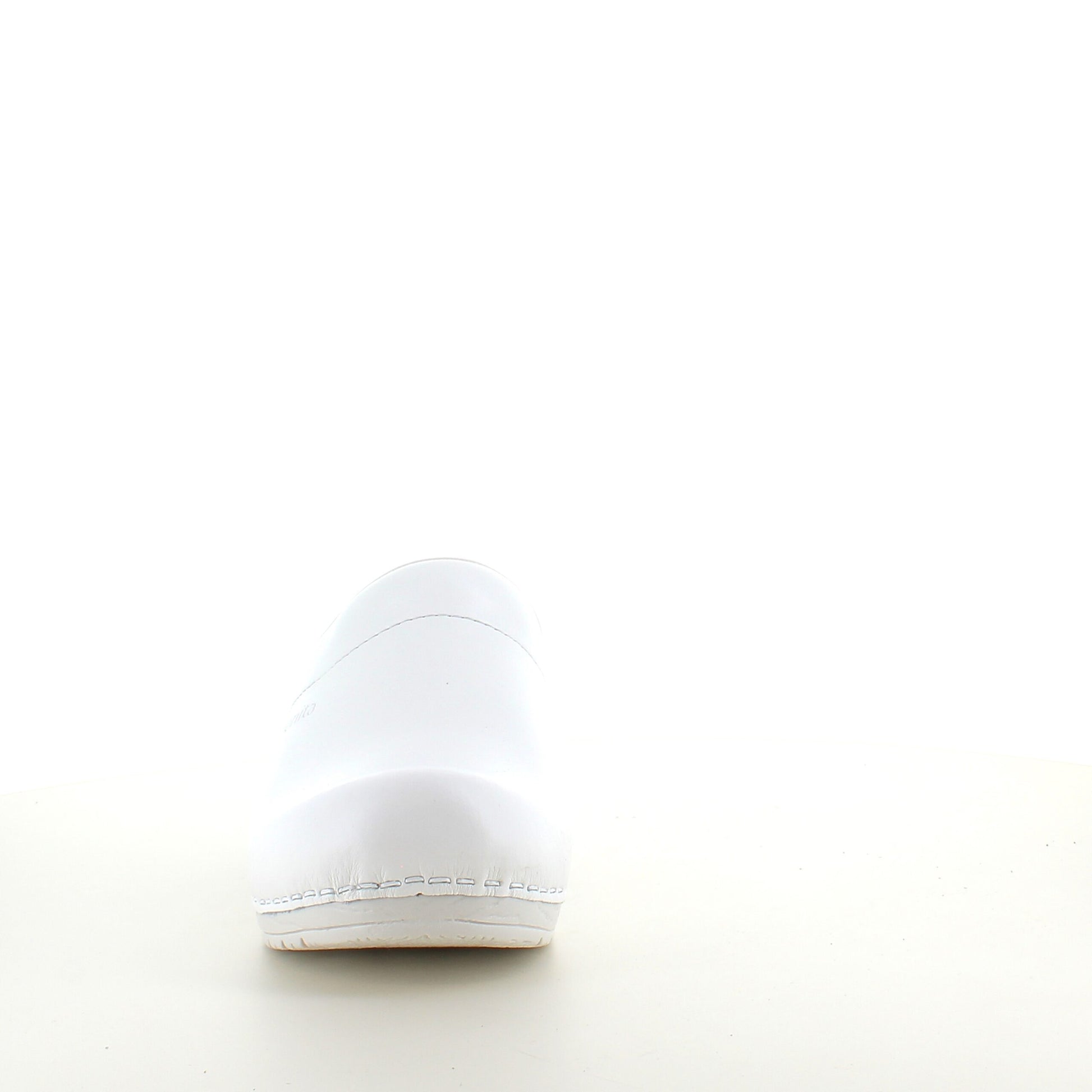 Disse hvide træsko er lavet af PU-læder, hvilket gør dem lette at rengøre og ideelle til professionel brug.