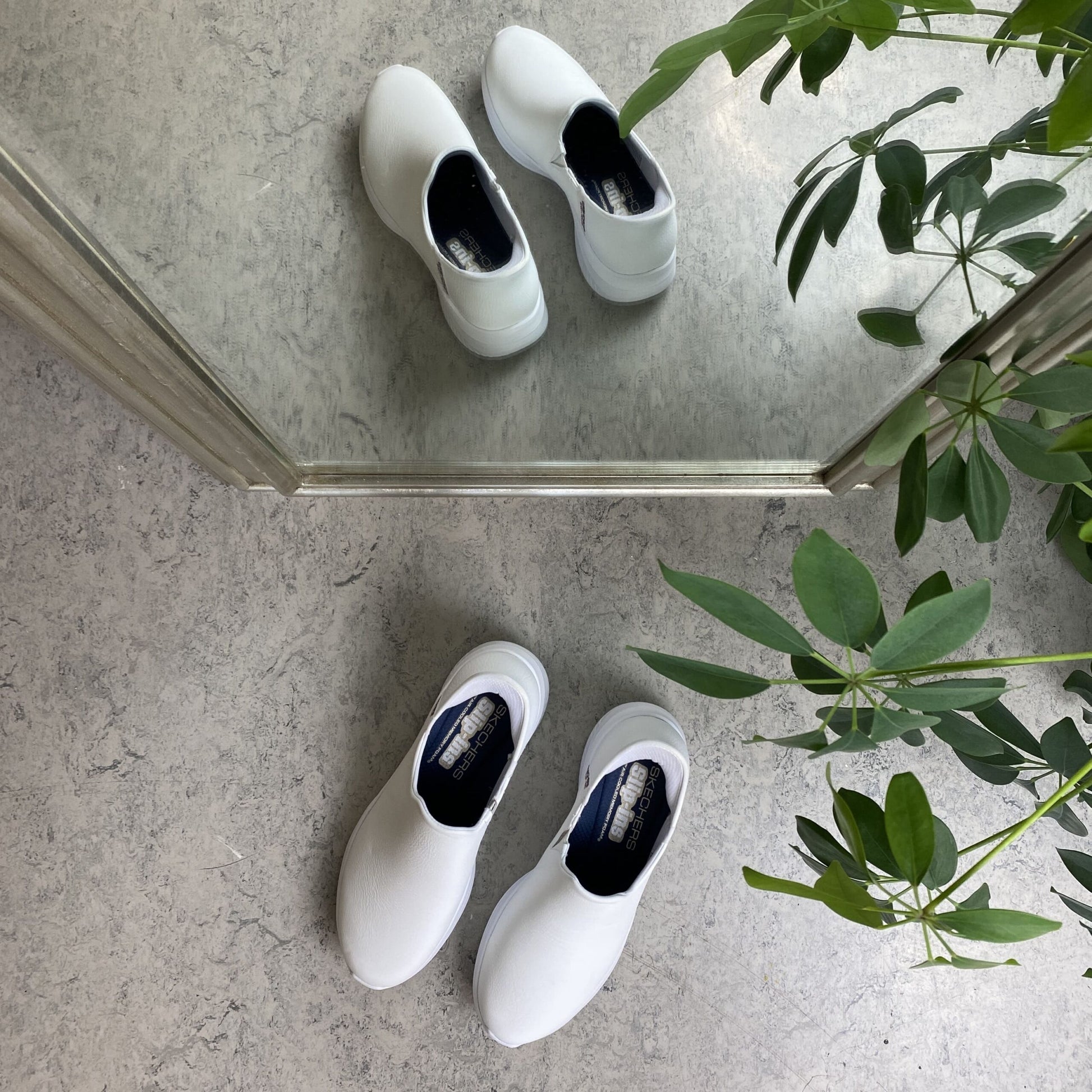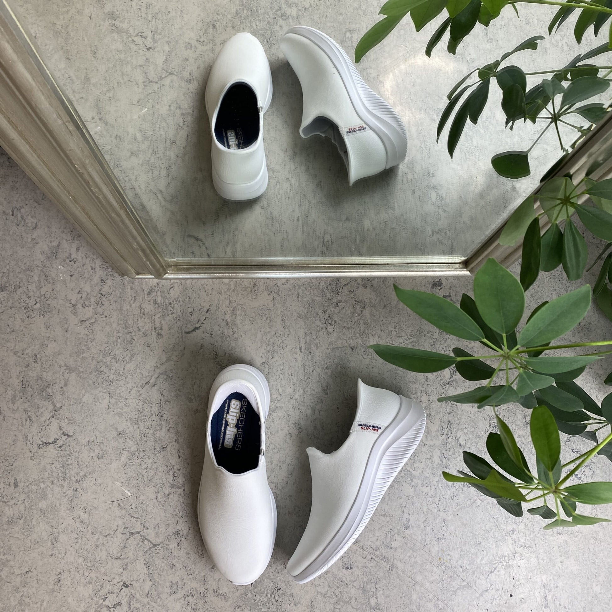 Hvid skind slip-in sko fra Skechers