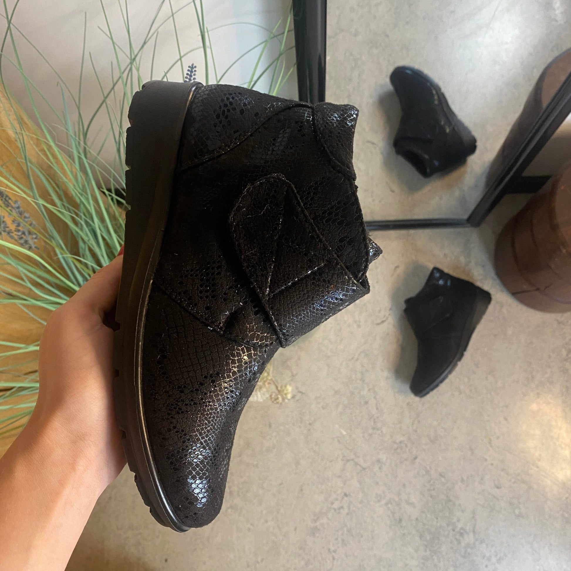 - Materiale: Blød overdel med let præget mønster, der giver et elegant look.