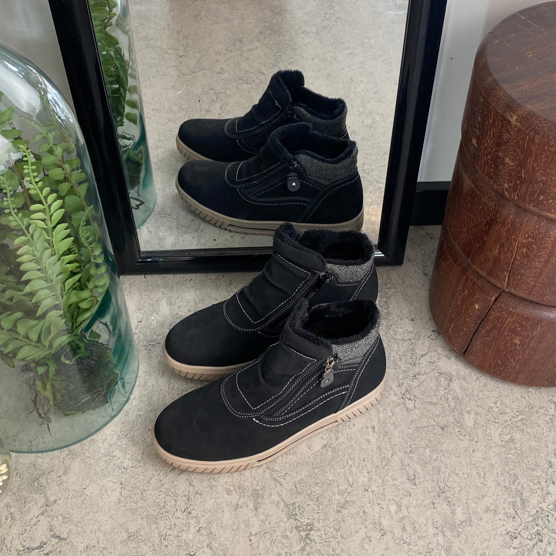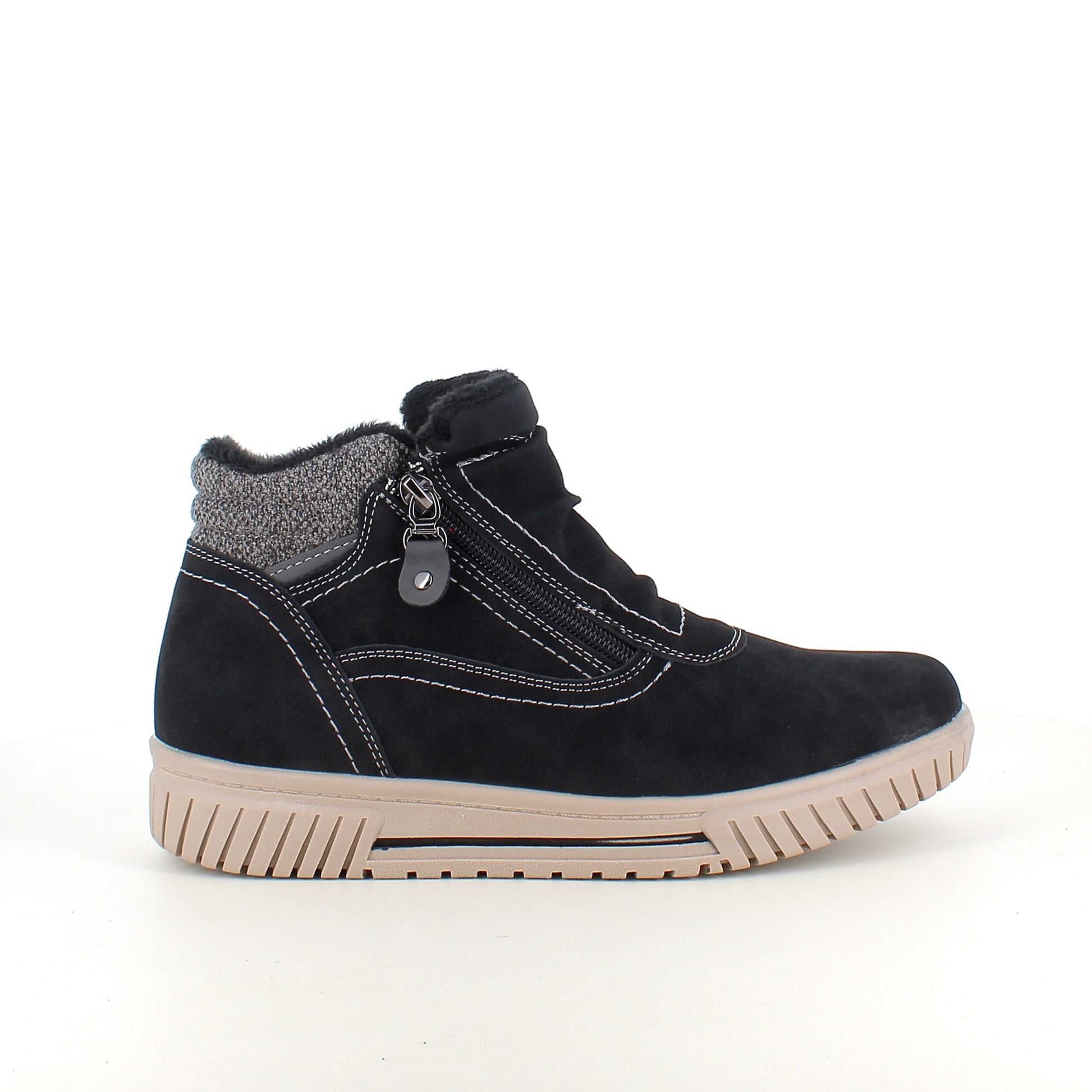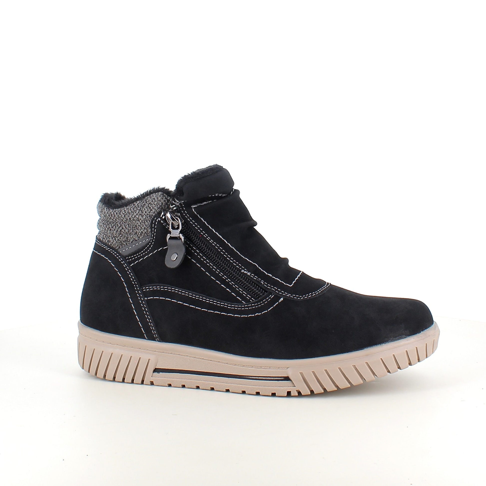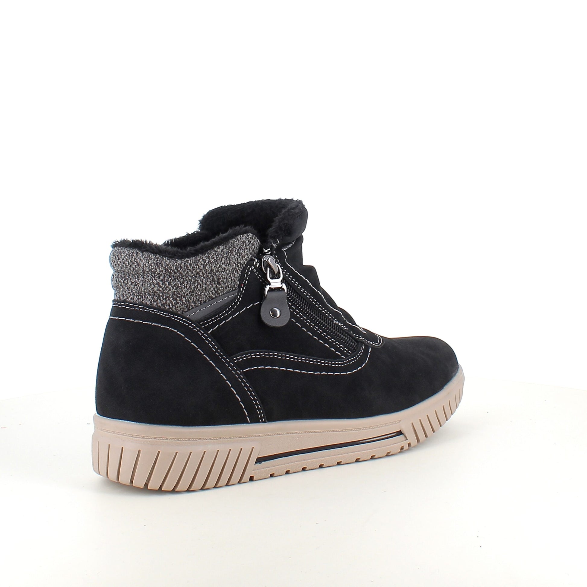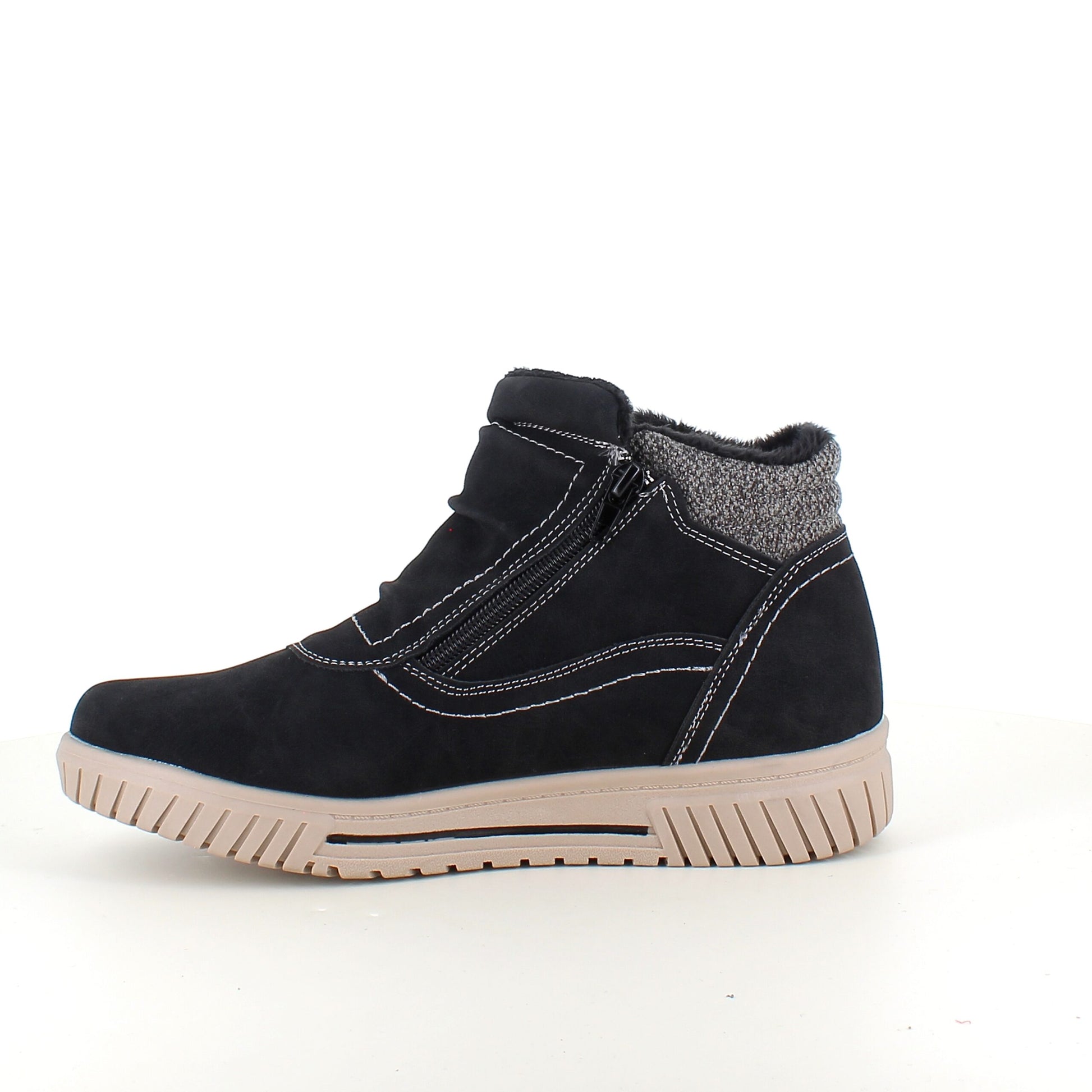 Kort foret vinterstøvle i sort med dobbelt lynlås