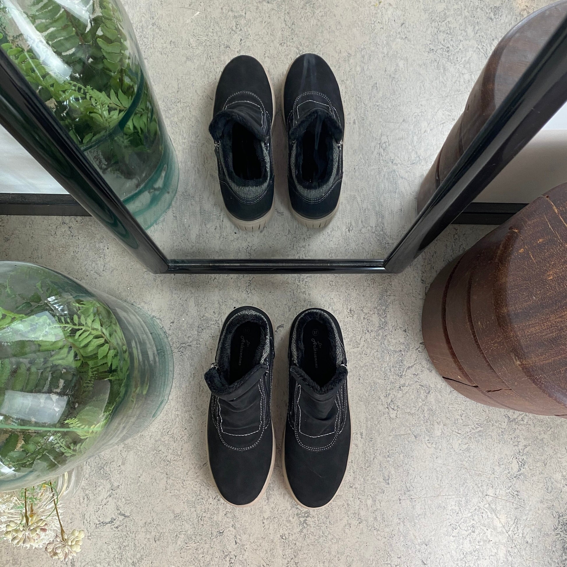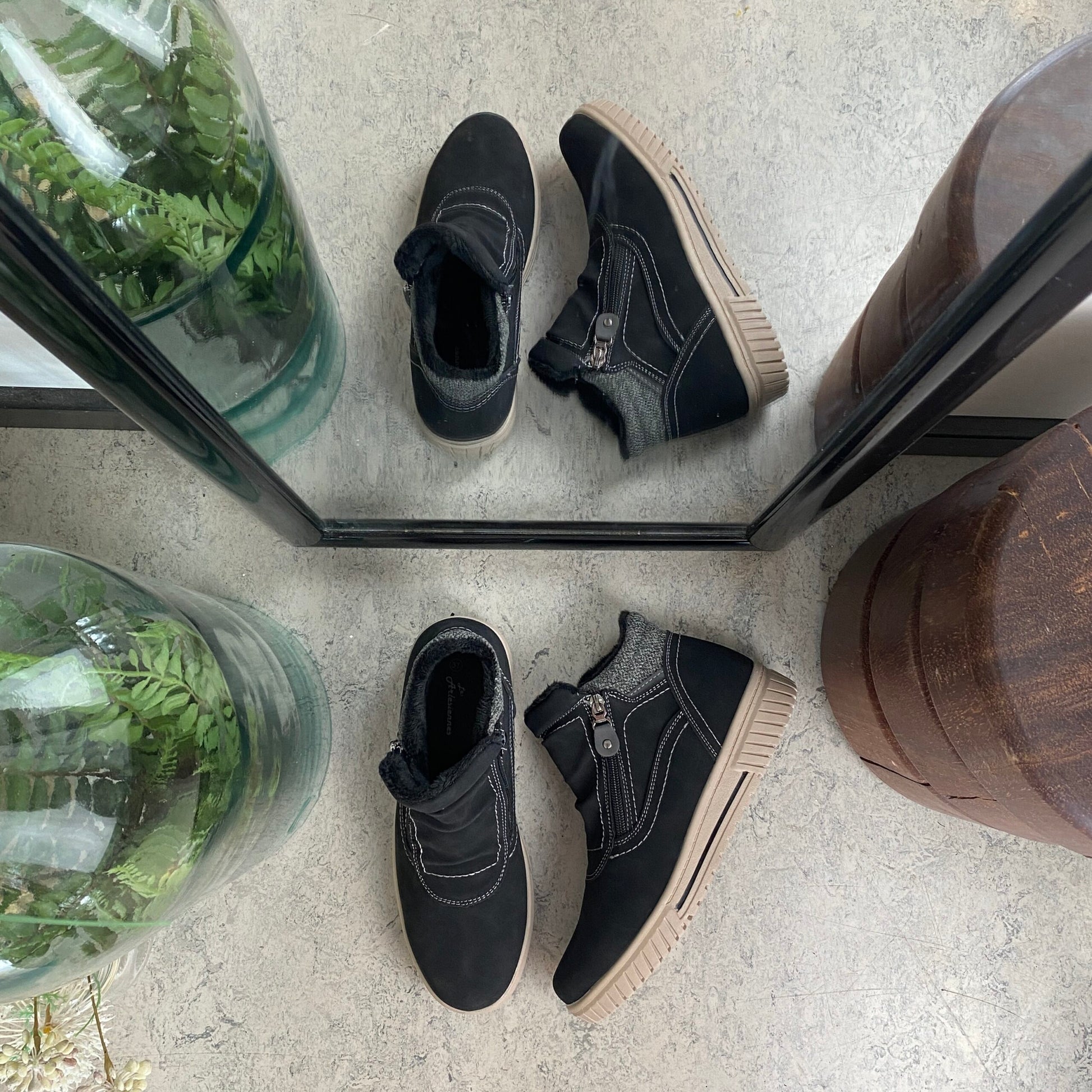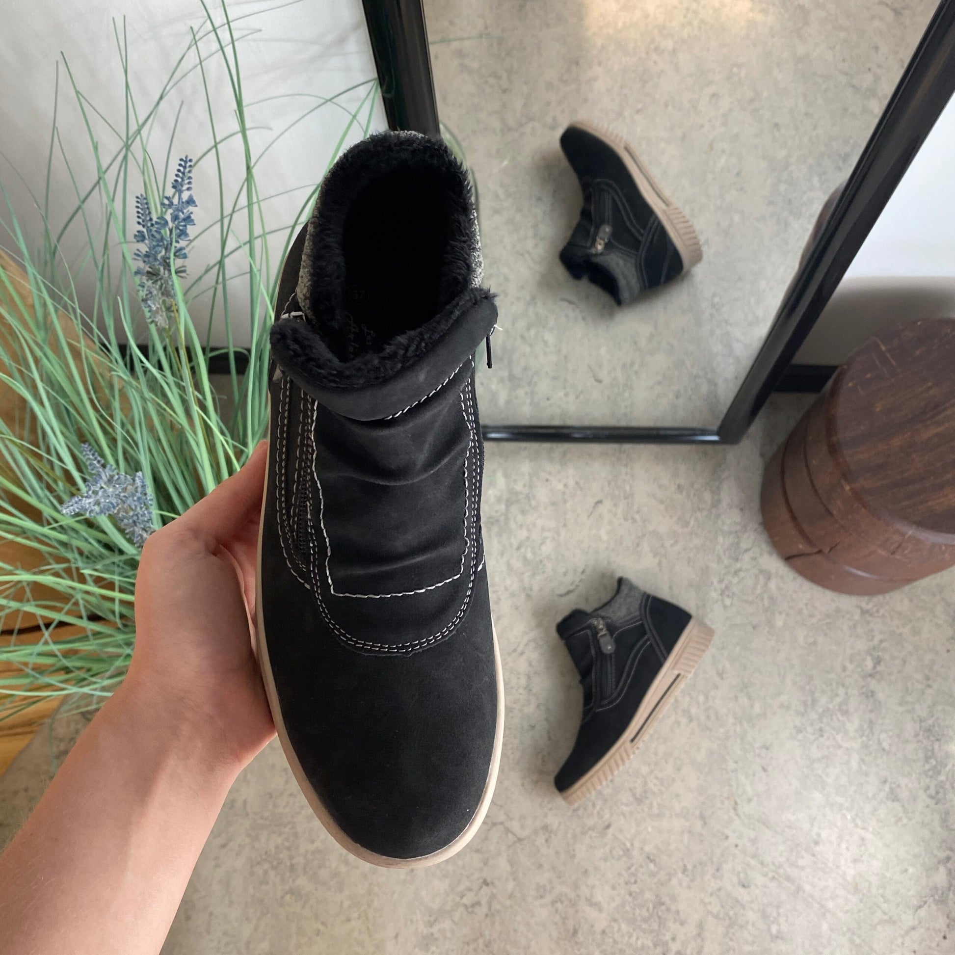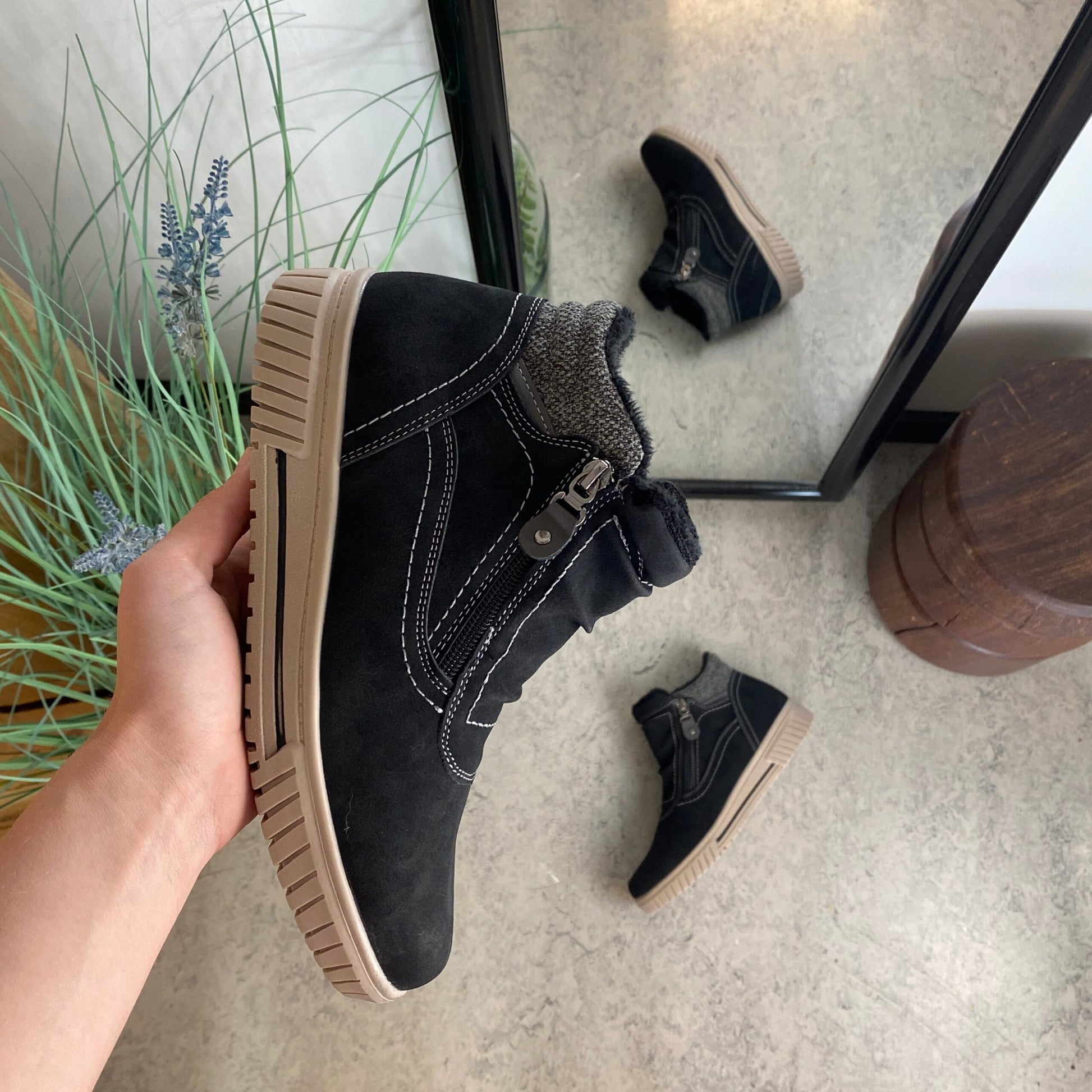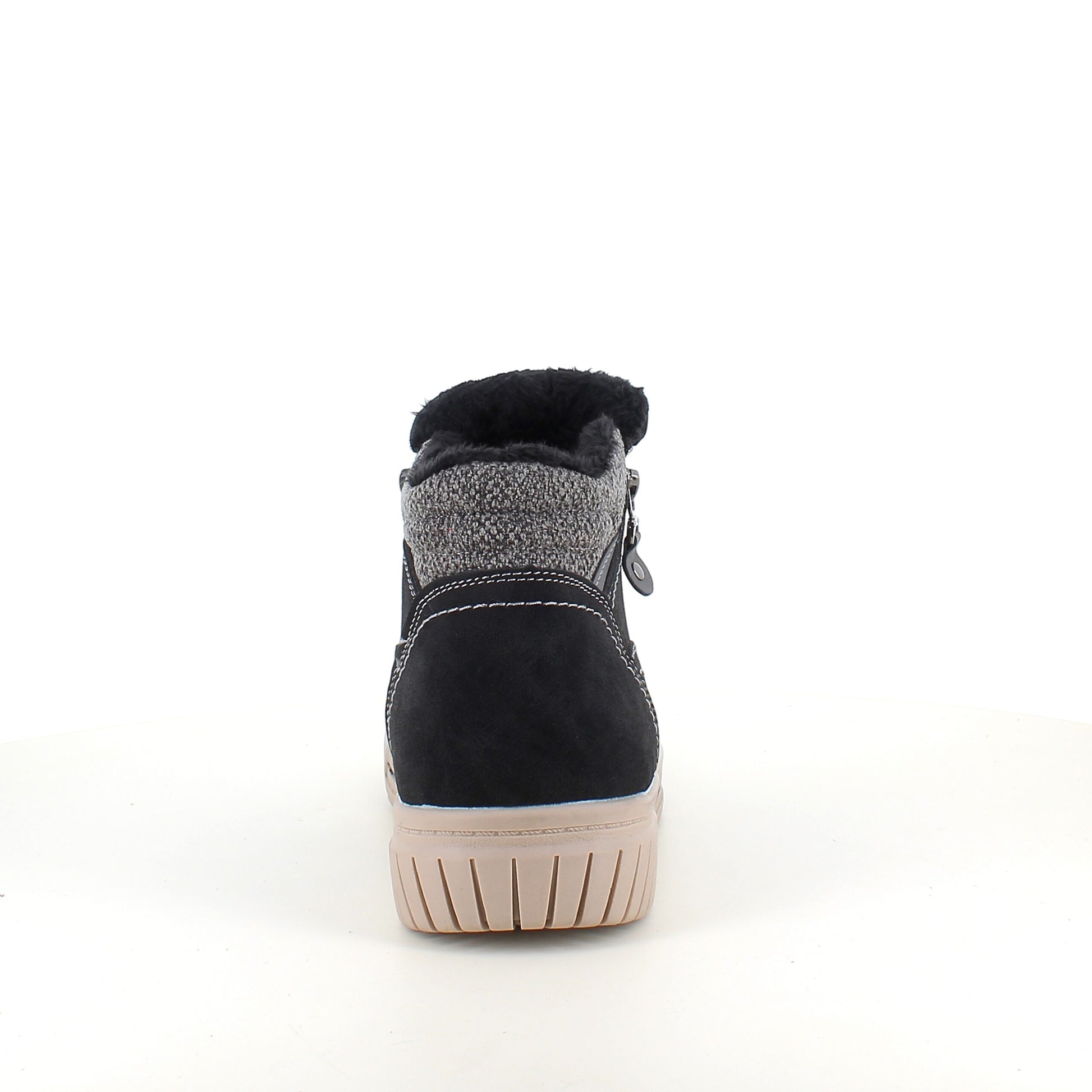 Kort foret vinterstøvle i sort med dobbelt lynlås