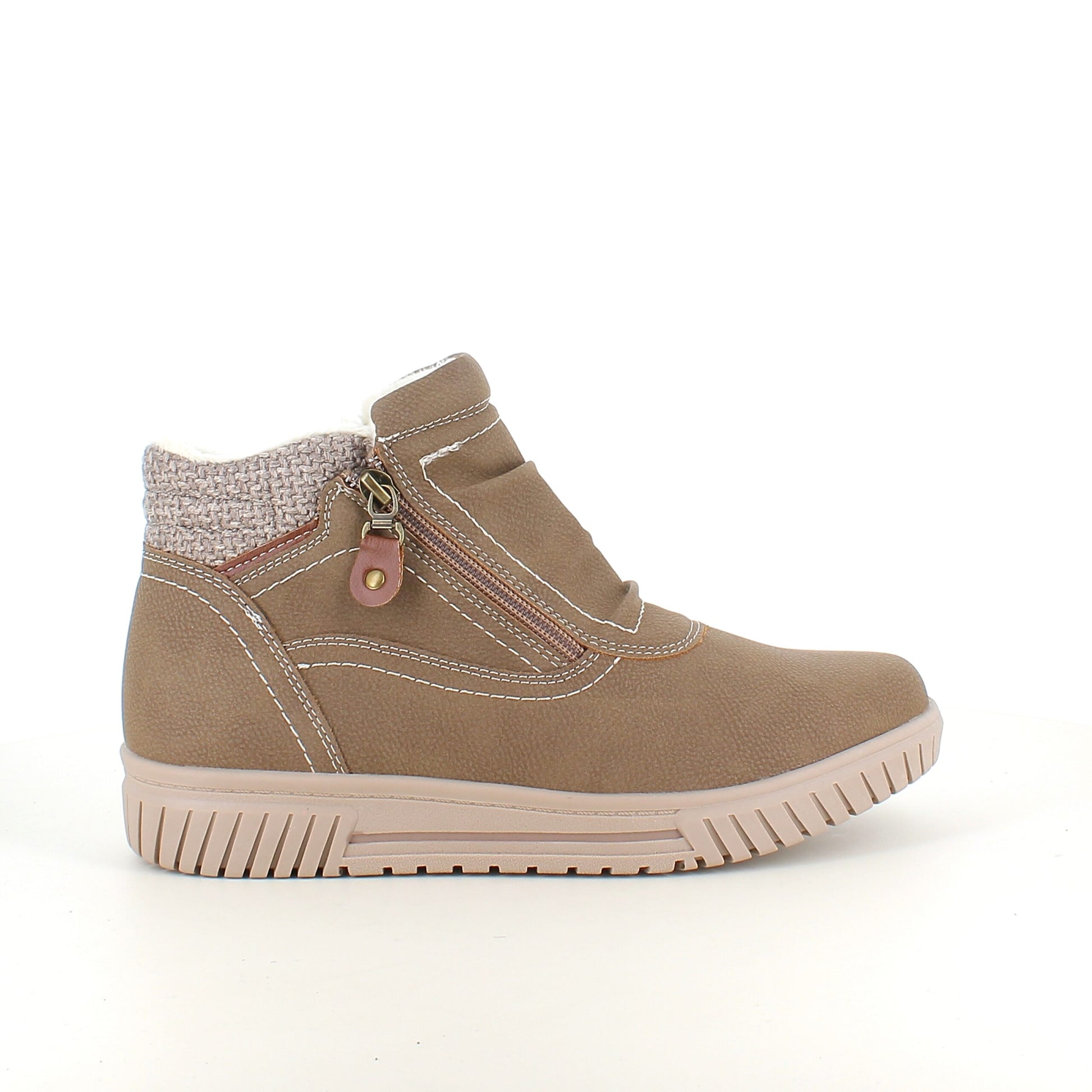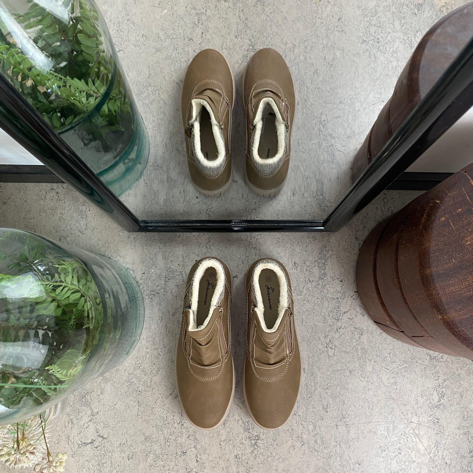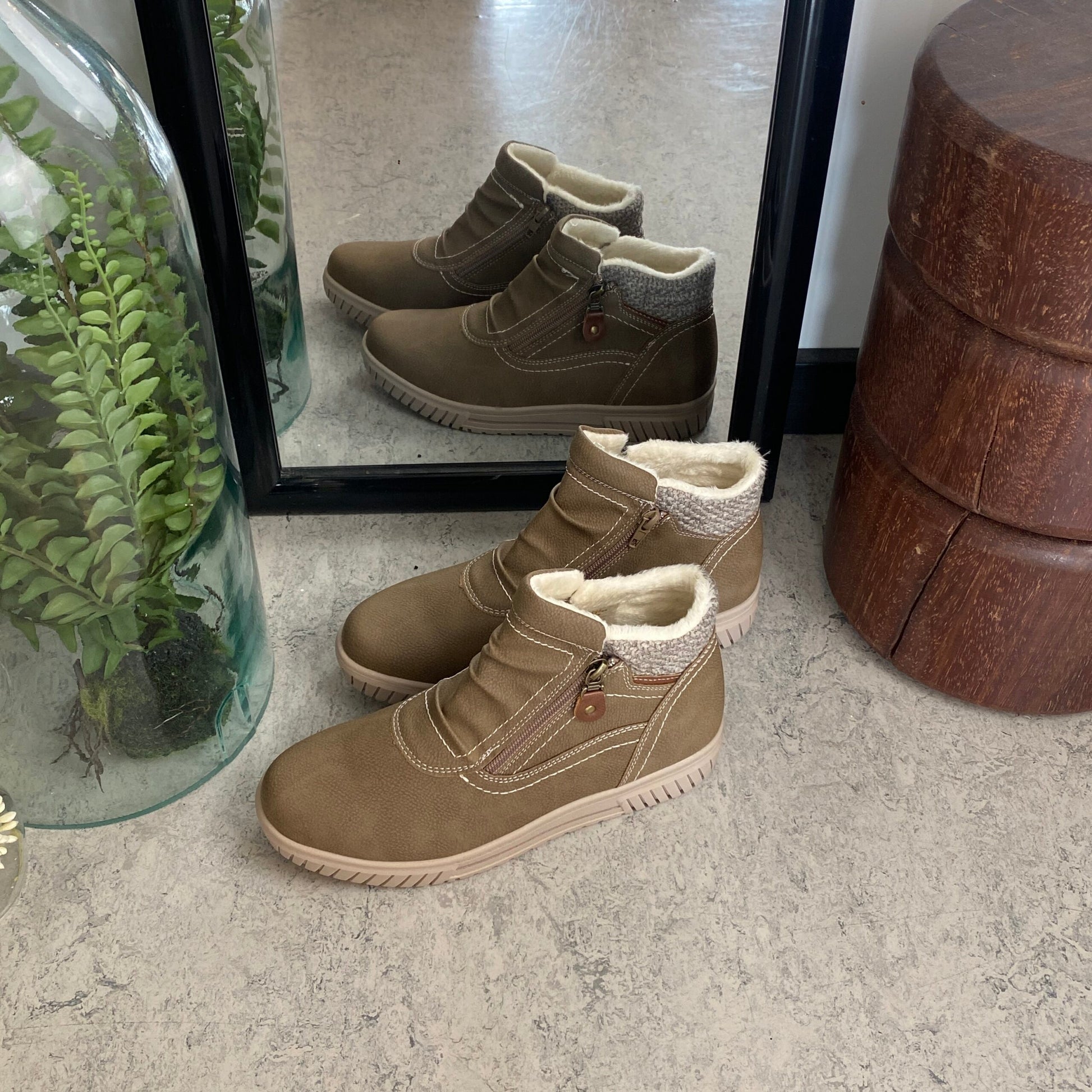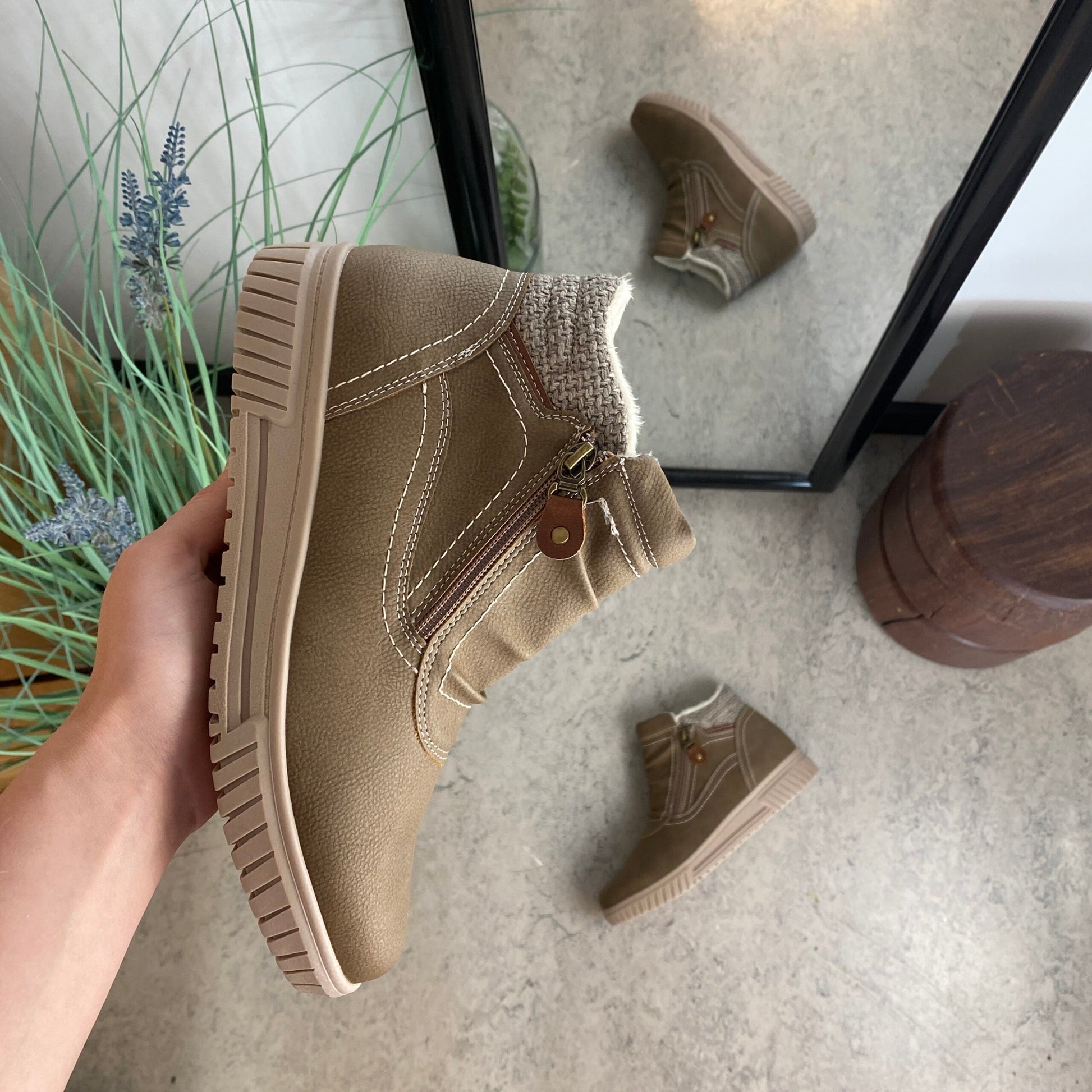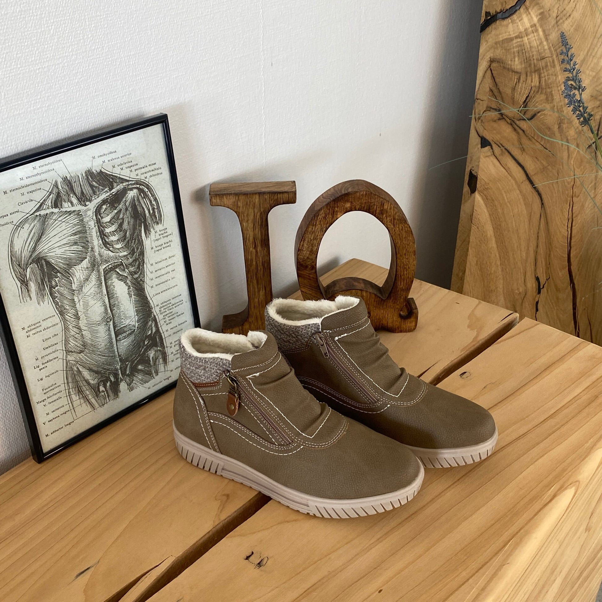Kort foret vinterstøvle i taupe med dobbelt lynlås
