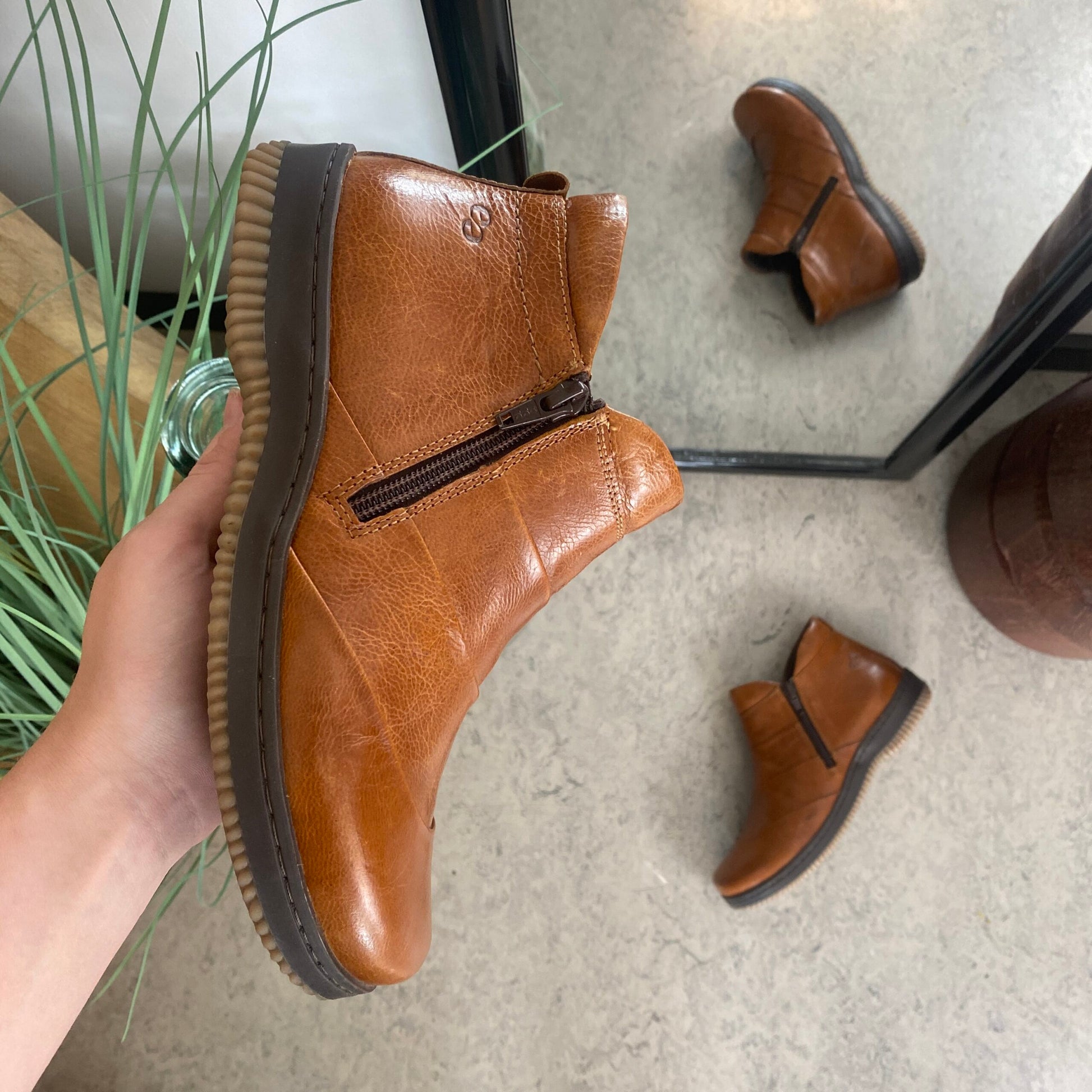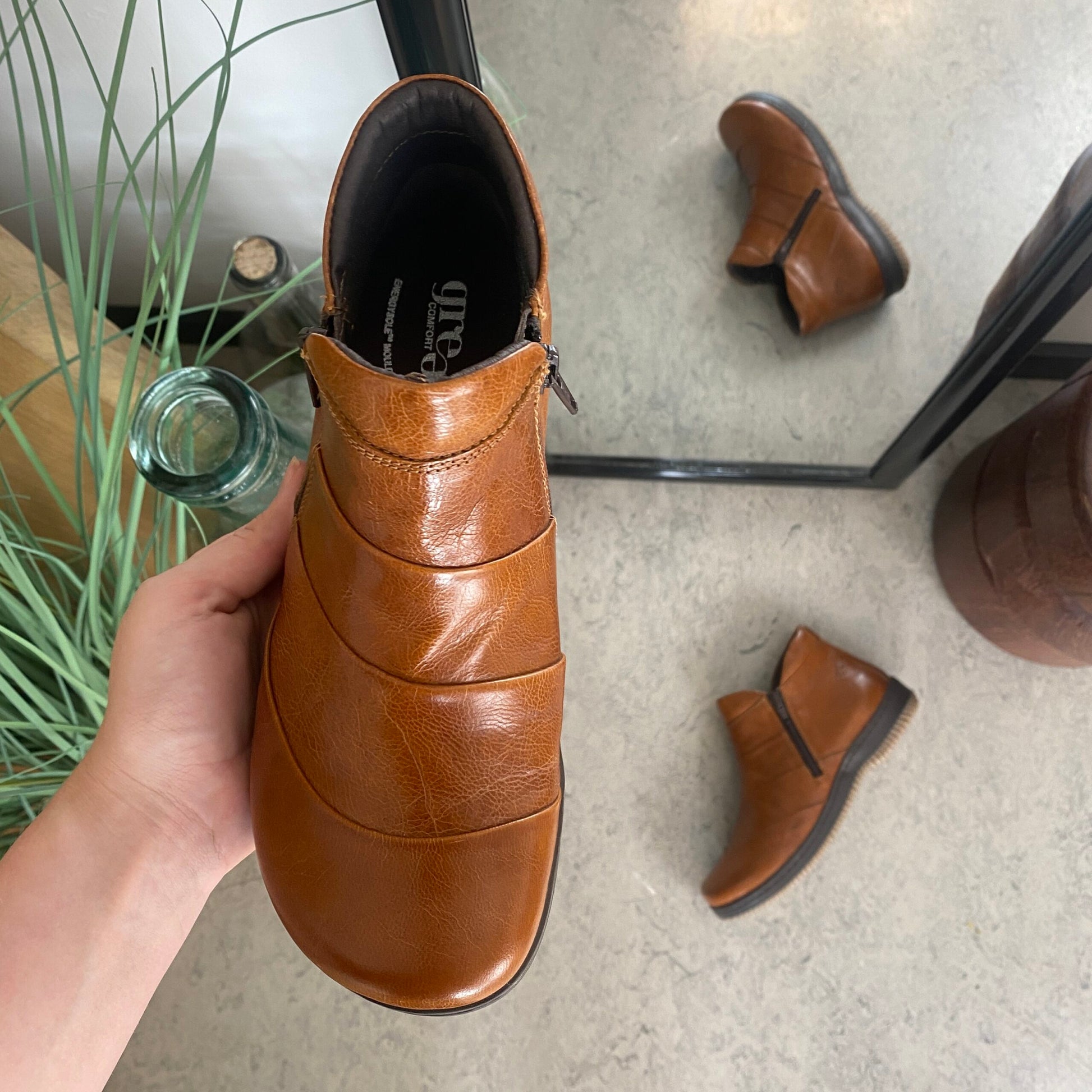 Kort støvle i brun skind fra Green Comfort