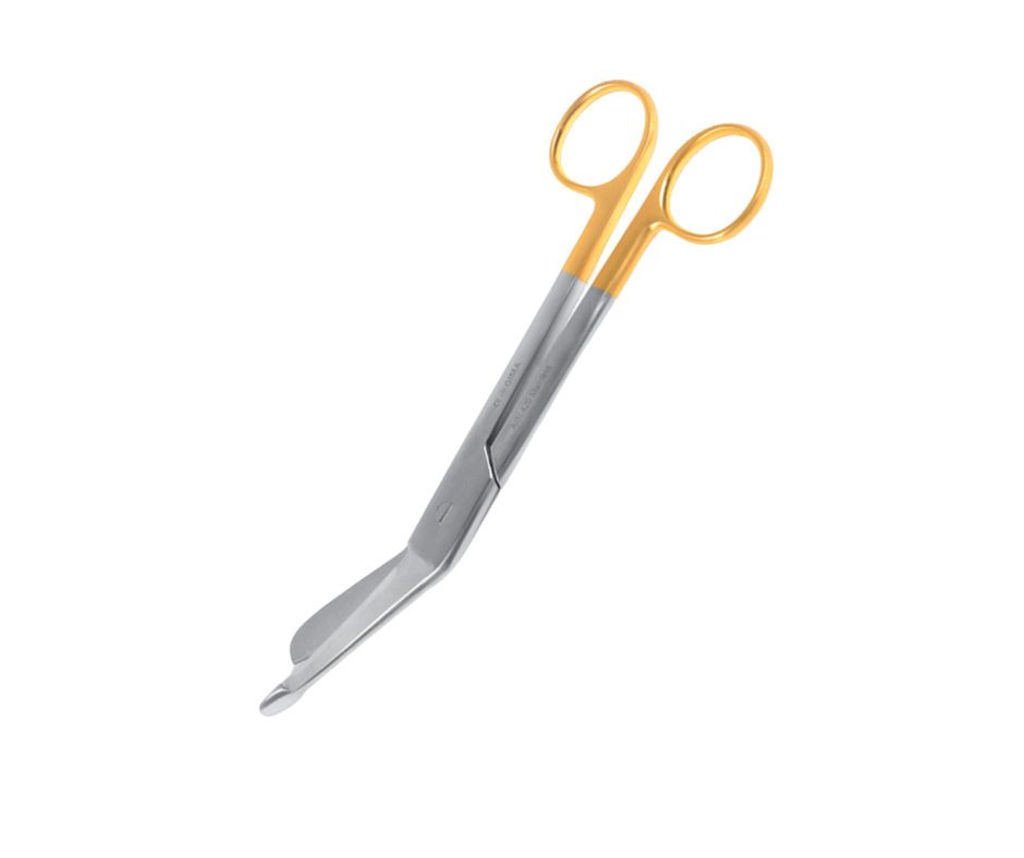 Bandagesaksen er vinklet, hvilket gør saksen ergonomisk korrekt at bruge.