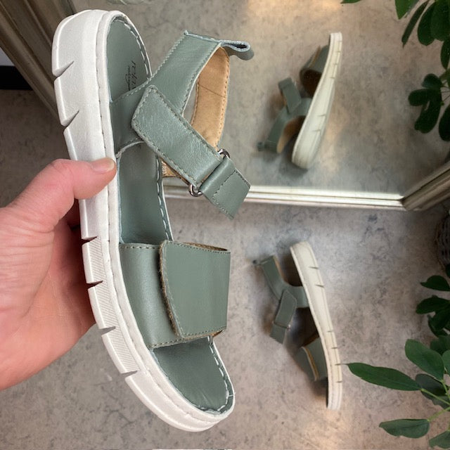 Skindsandal i flot glat, grønt skind.
