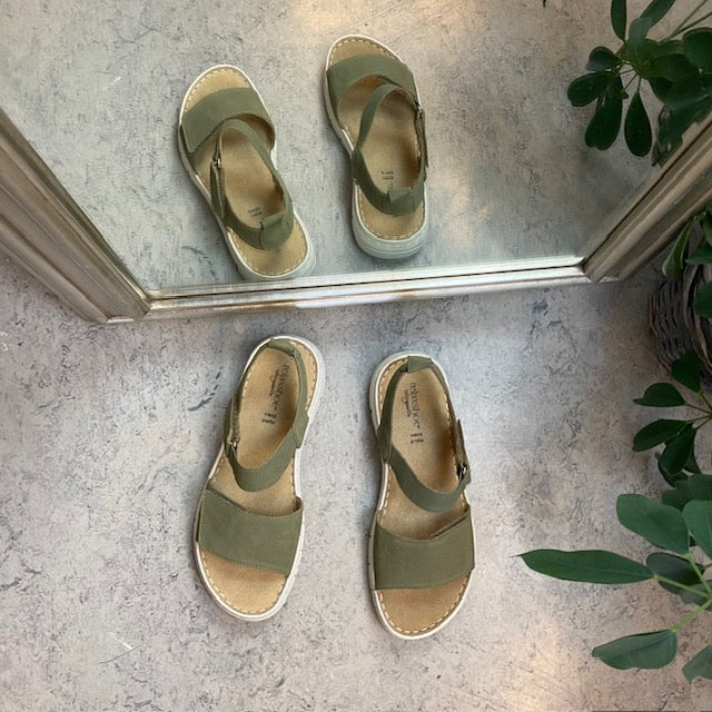 Lækker blød og fleksibel skindsandal i mat grøn fra Relaxshoe