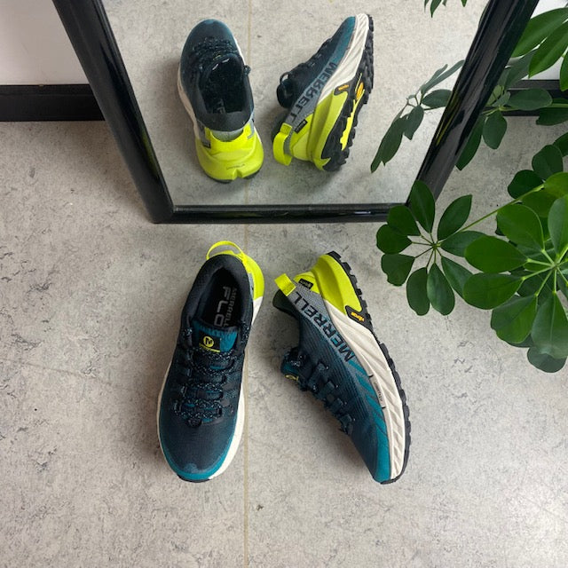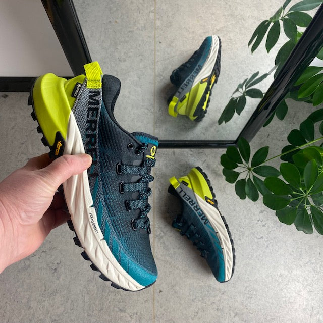 Vandre/Løbesko Agility Peak 4 fra Merrell med vibram ydersål med Trail profil, som sikre at du står godt fast i underlaget.