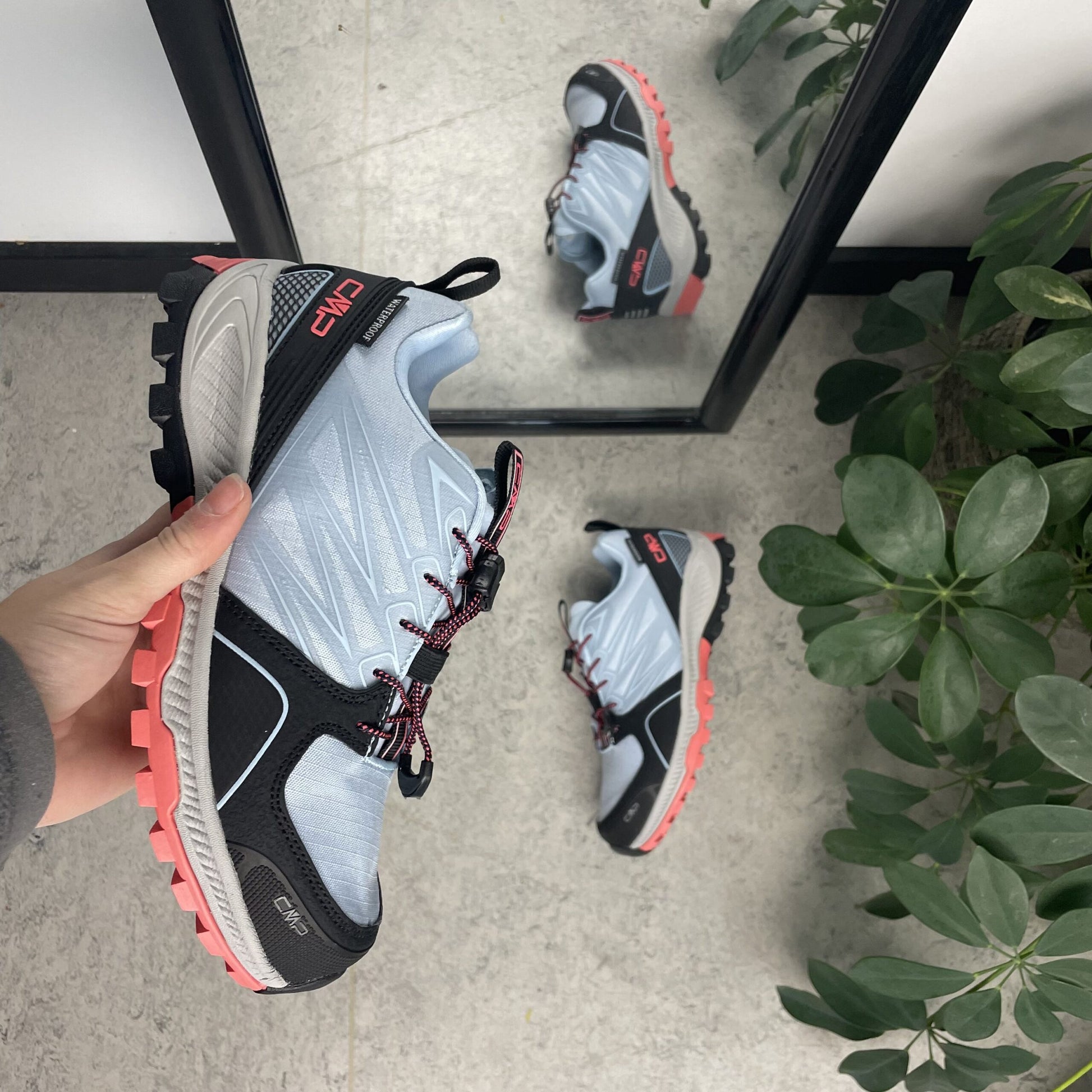 Lyseblå løbesko fra CMP med pink og sorte detaljer