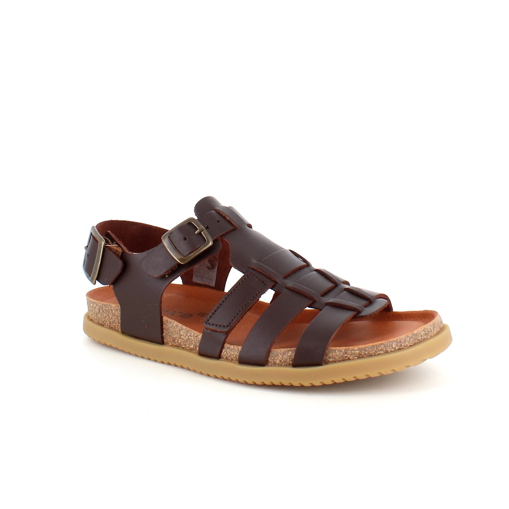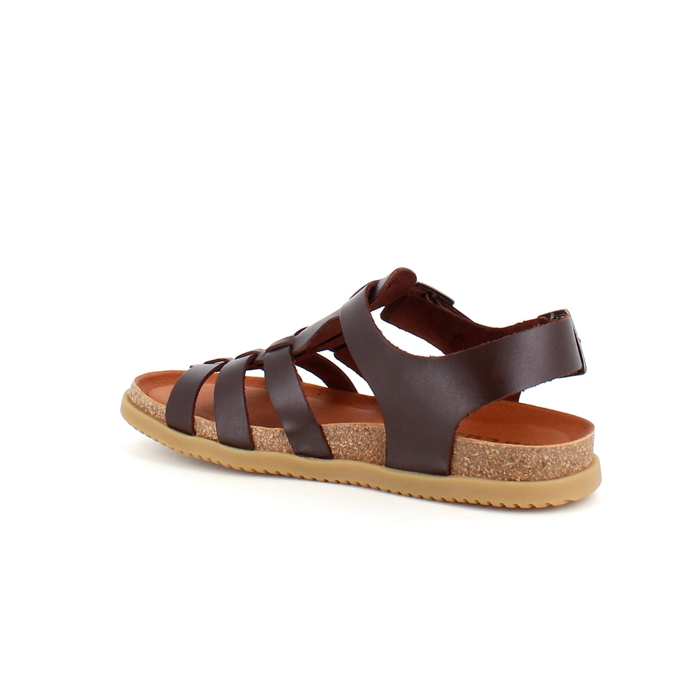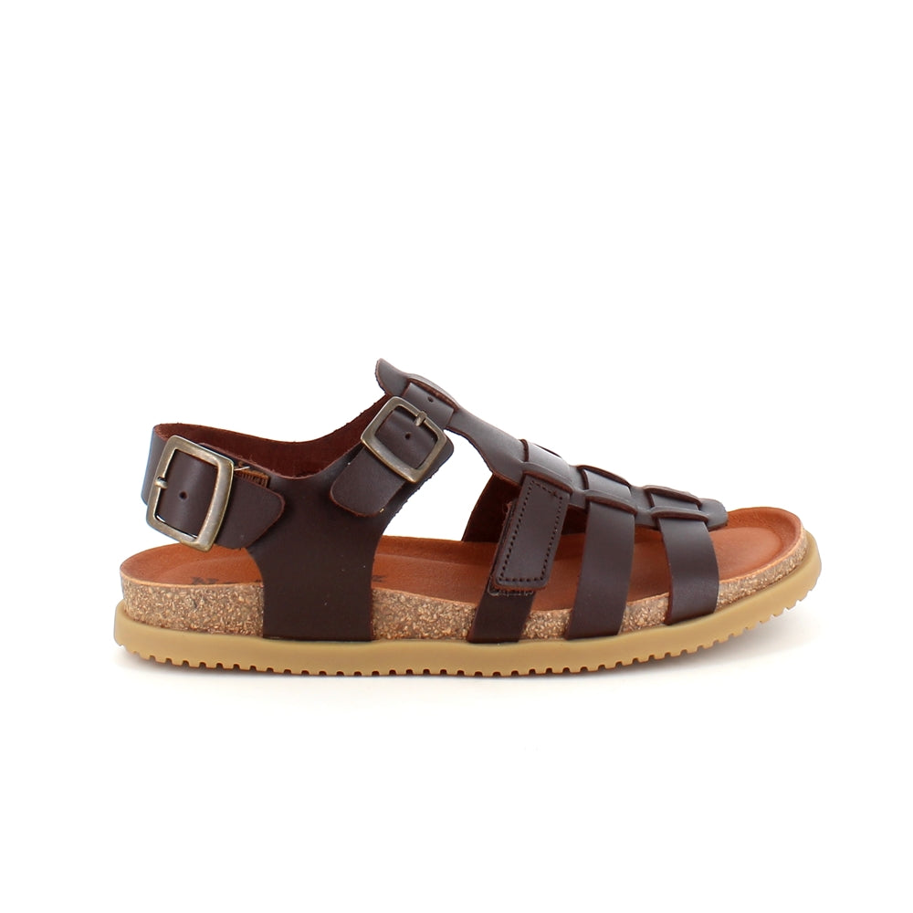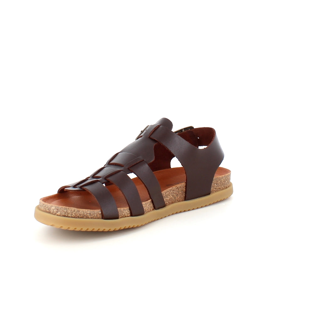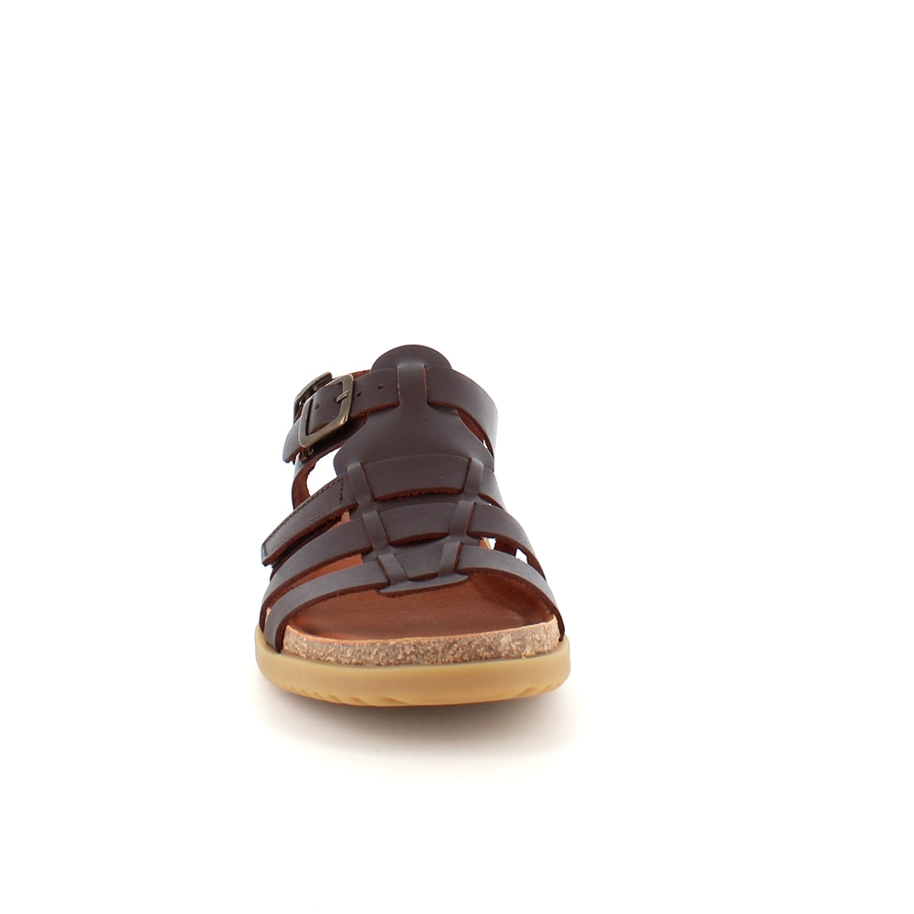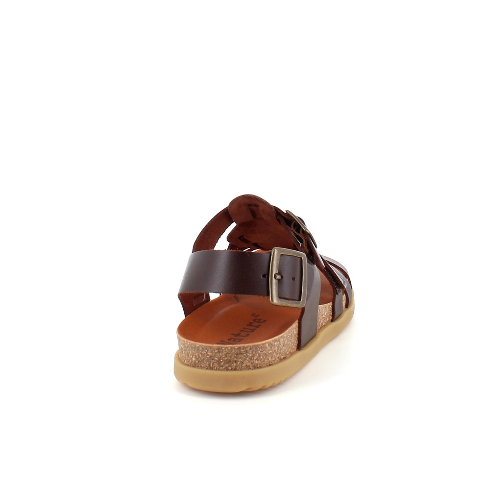 Flot, mørkebrun lædersandal fra Nature med to remme over forfoden hvoraf den ene kan indstilles i velcrolukningen