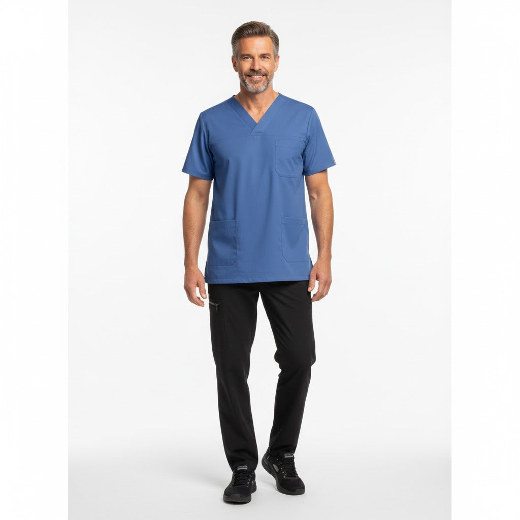 Kollektionen bringer farve og glæde ind i dine arbejdsdage med en bred vifte af pastelfarver. Denne alsidige serie er perfekt til både sundheds- og plejesektoren samt servicesektoren og kombinerer minimalisme med nordisk elegance. Busseronnens detaljer, såsom nøglestropper indvendigt i hoftelommerne, mobillommen og slidserne i siderne, er praktiske og stilfulde. FlexFix-trykknapper og et temperaturregulerende stof med V-udskæring bidrager til et slankere udtryk i hals og ansigt. Tilgængelige farver inkluderer blå, hvid, navy, lyseblå, turkis, pale grey, lysegrøn, rød, bordeaux, lys bordeaux, lys lilla, gul og orange, så du kan finde den, der passer perfekt til dig.