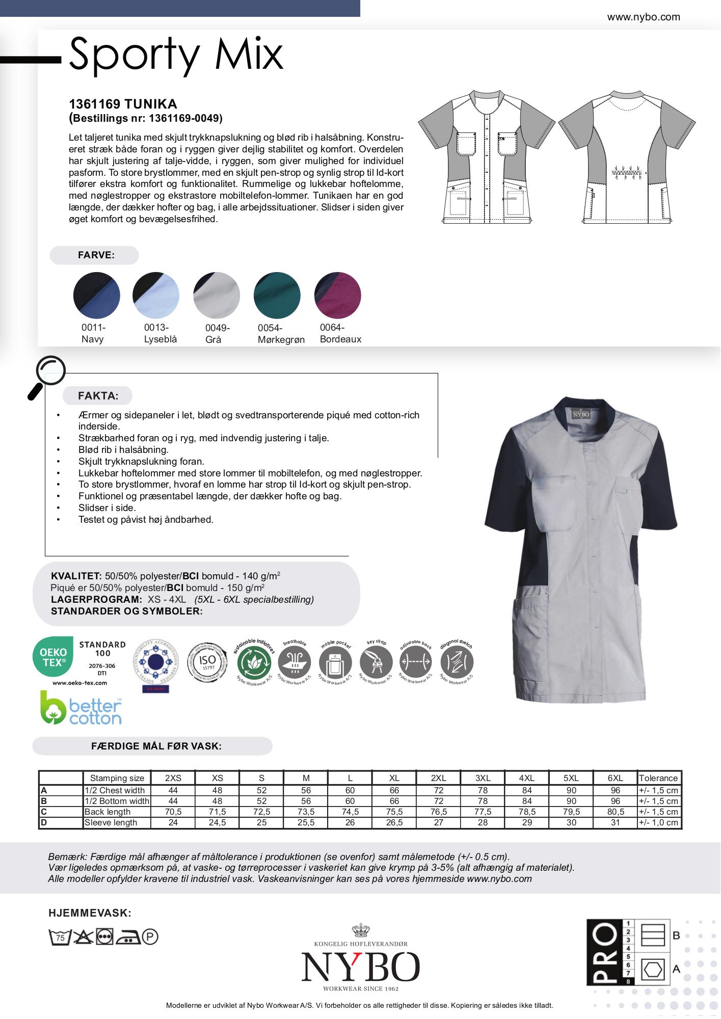Ærmerne og sidepanelerne er lavet af let og blødt piqué, som er svedtransporterende og har en behagelig cotton-rich inderside. Tunikaen har en funktionel længde, der dækker både hofter og bagdel, hvilket gør den ideel til alle arbejdssituationer, mens slidser i siden yderligere forbedrer bevægelsesfriheden.