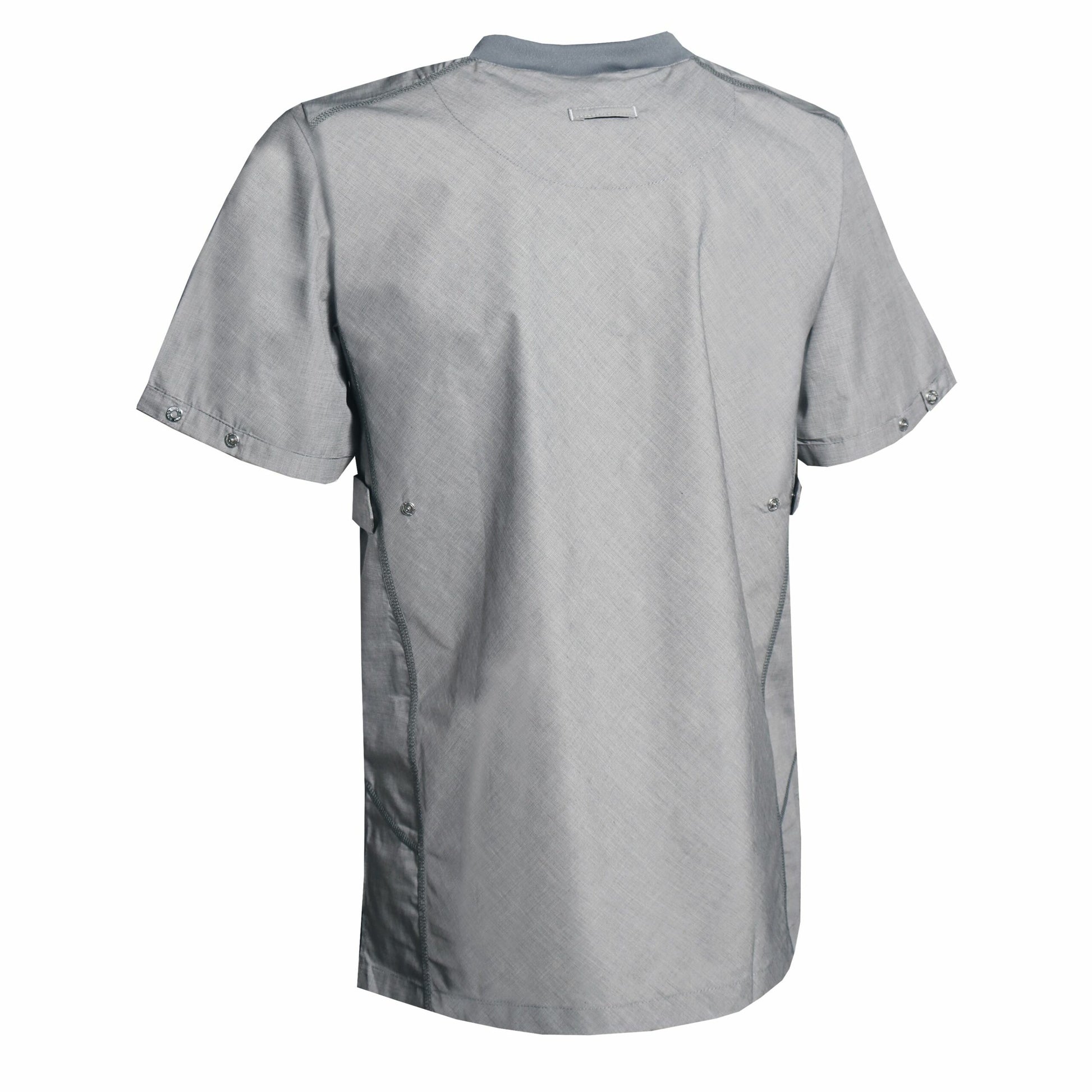 Opdag stil og funktionalitet med den grå unisex-skjorte fra Nybo Workwear A/S. Denne sporty tunika er designet til både mænd og kvinder og tilbyder optimal komfort med en rummelig brystlomme samt hoftelommer, der alle har nøglestropper og integrerede mobillommer sikret med trykknapper. Med en lige facon, der giver god dækning ved buk og løft, og praktiske slidser i siderne, garanteres der ekstra bevægelsesfrihed. Ærmerne og overvidden kan justeres, så skjorten også kan få et mere feminint udseende, hvis ønsket.
