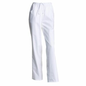 Disse bukser fra Nybo Workwear A/S er specielt designet til kvinder og kommer med både elastik i taljen og et praktisk bindebånd foran. Produktet, kendt som Nybo Hvide Dame Club-Classic Bukser, er fremstillet af en blød polyester-bomuldsblanding og er omhyggeligt syet for at undgå gennemsigtighed.