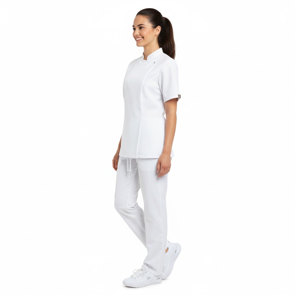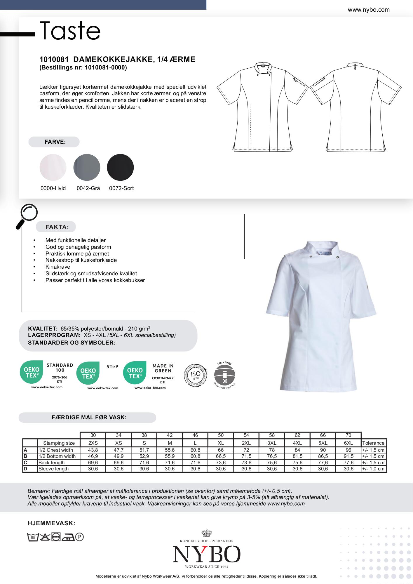Nybo Hvid Dame Tastekokkejakke, Kortærmet, Figursyet, Slidstærk
