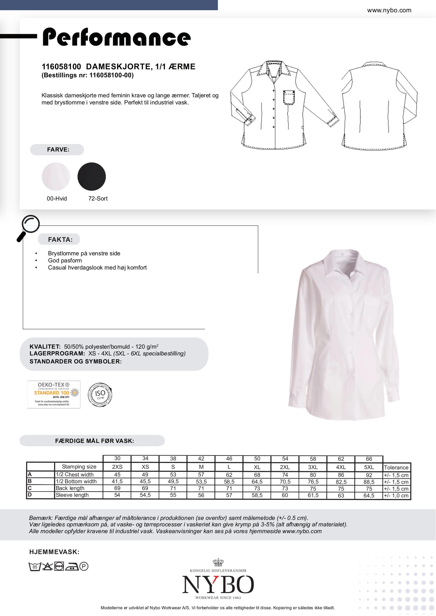 Nybo Hvid Dameskjorte Performance Lange Ærmer, Taljeret, Industrivask