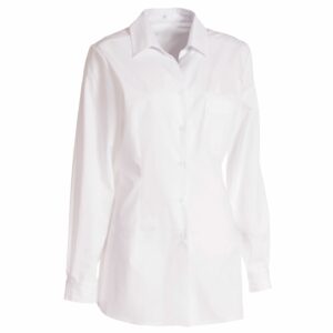 Nybo Workwear A/S præsenterer den elegante og funktionelle hvide dameskjorte med lange ærmer, som er designet til at give et slankt og stilfuldt look. Denne skjorte udmærker sig med sin feminine krave og en praktisk brystlomme i venstre side, hvilket tilføjer både elegance og funktionalitet. Den er skabt til at modstå industriel vask, hvilket gør den ideel til arbejdspladser med høje krav til hygiejne og holdbarhed.