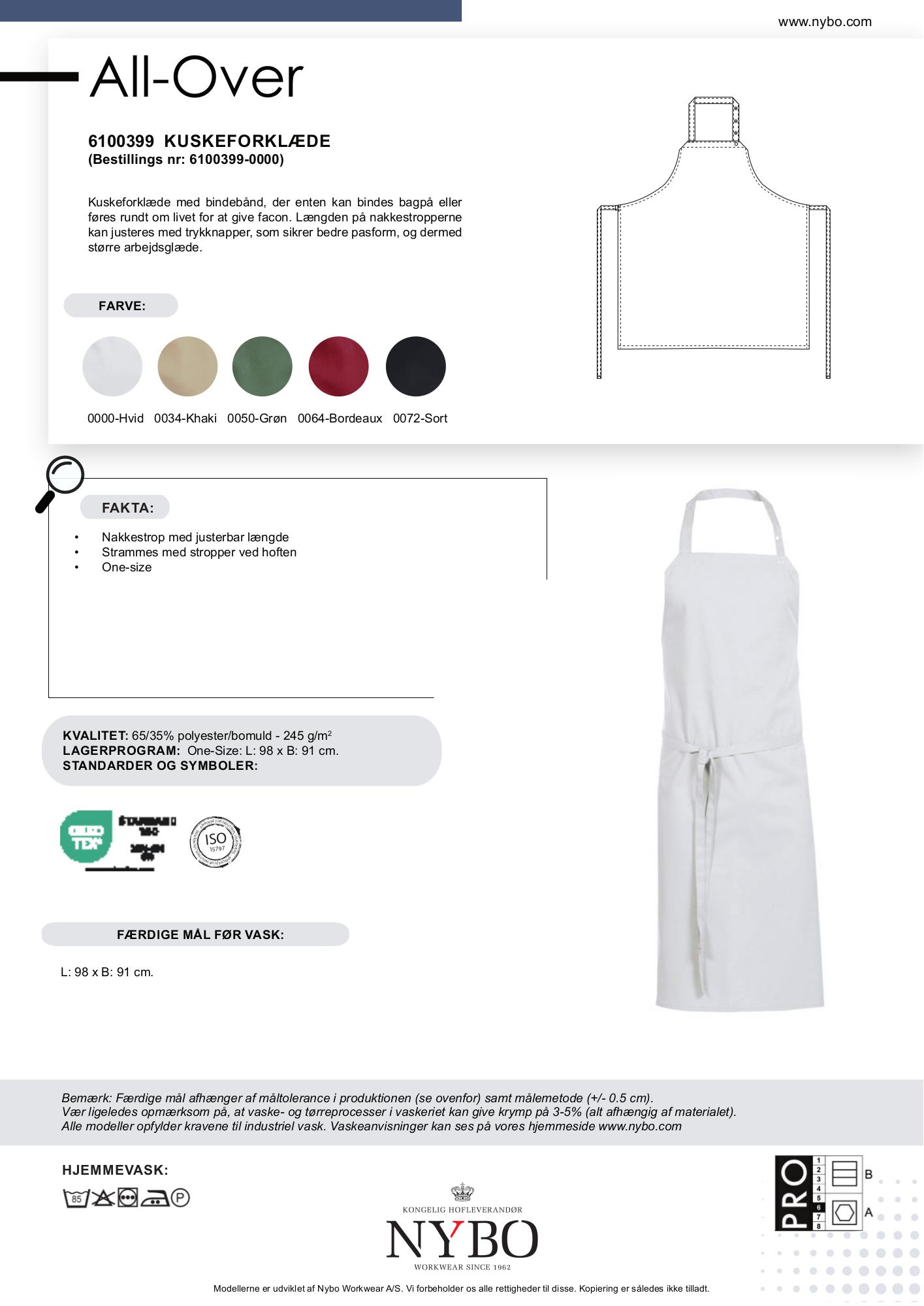 Nybo Hvid Unisex Forklædeserie Kuskeforklæde er designet til at give både komfort og funktionalitet i hverdagen. Med justerbare nakkestropper, der nemt kan tilpasses med trykknapper, sikrer dette kuskeforklæde en perfekt pasform, der øger brugerens arbejdsglæde. Bindebåndene kan bindes bagpå eller rundes om livet for at skabe en mere defineret facon. Denne brugervenlighed gør det til en favorit blandt brugere.