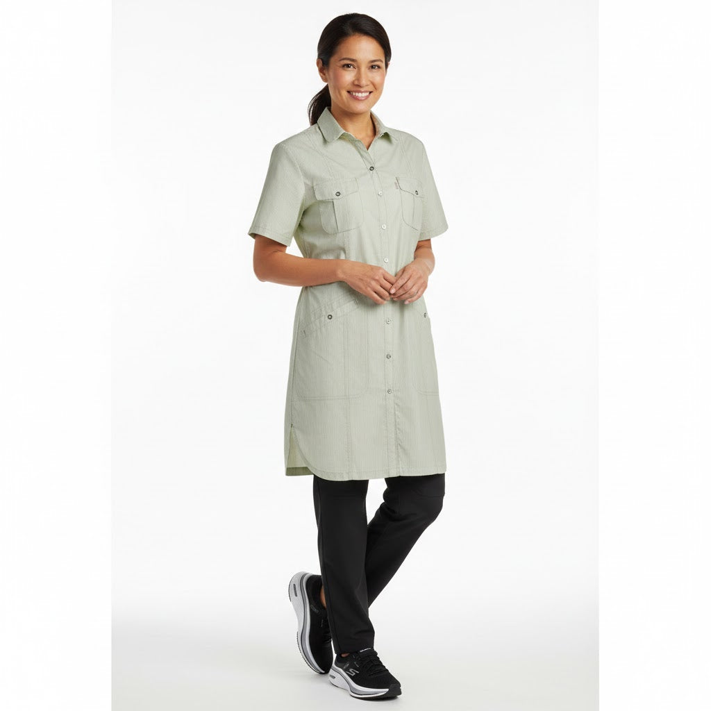 Den fornøjelige og stilfulde dameskjorte fra Nybo Workwear A/S, "Nybo Lime Stribet Dame Fresh Lang Tunika/Kjole med Justerbar Elastik i Ryggen" er en fantastisk tilføjelse til enhver garderobe. Denne elegante dametunika har et let taljeret snit og en kjoleinspireret stil, hvilket giver et både afslappet og sofistikeret look. Et unikt træk ved denne tunika er den justerbare elastik i ryggen, som sikrer en perfekt pasform hver gang. Desuden er der rummelige hoftelommer med praktiske nøglestropper, der giver dig maksimal funktionalitet.