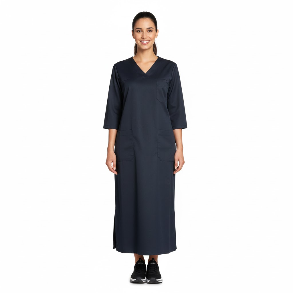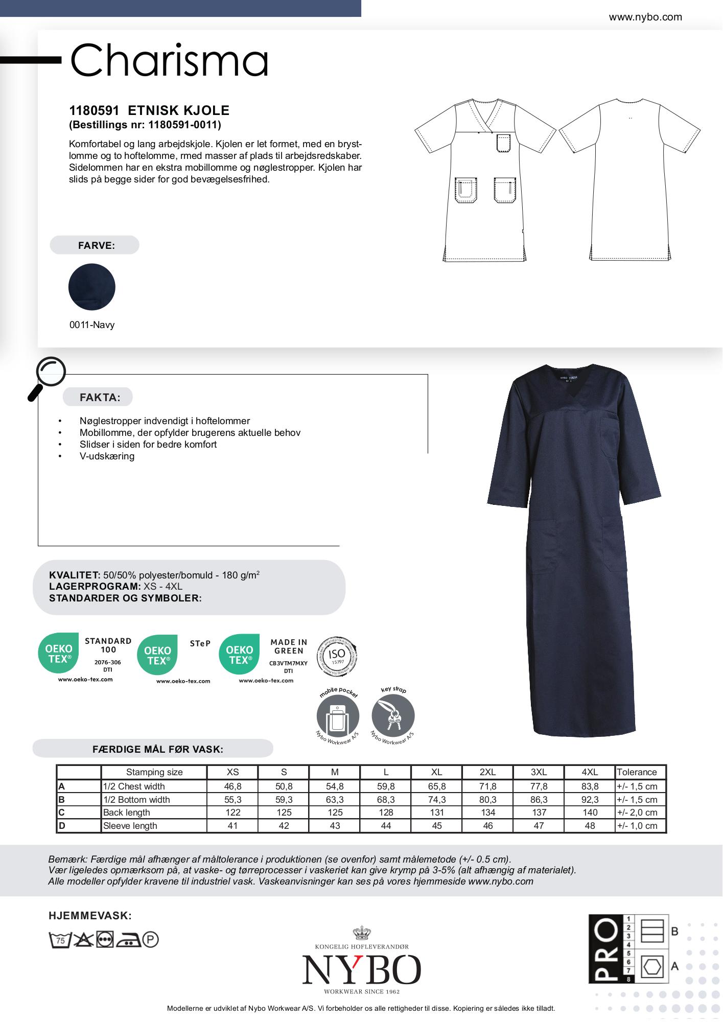 Nybo Workwear A/S tilbyder en udsøgt Navy Dame Charisma Kjole, der kombinerer kortærmet design med enestående komfort og uovertruffen bevægelsesfrihed. Denne kjole med 3/4 ærmer er ideel til arbejdsbrug, da den ikke blot er let formet, men også praktisk med en brystlomme og to rummelige hoftelommer, hvoraf den ene har en ekstra mobillomme og nøglestropper. Side-slidserne bidrager desuden til yderligere komfort og bevægelighed.