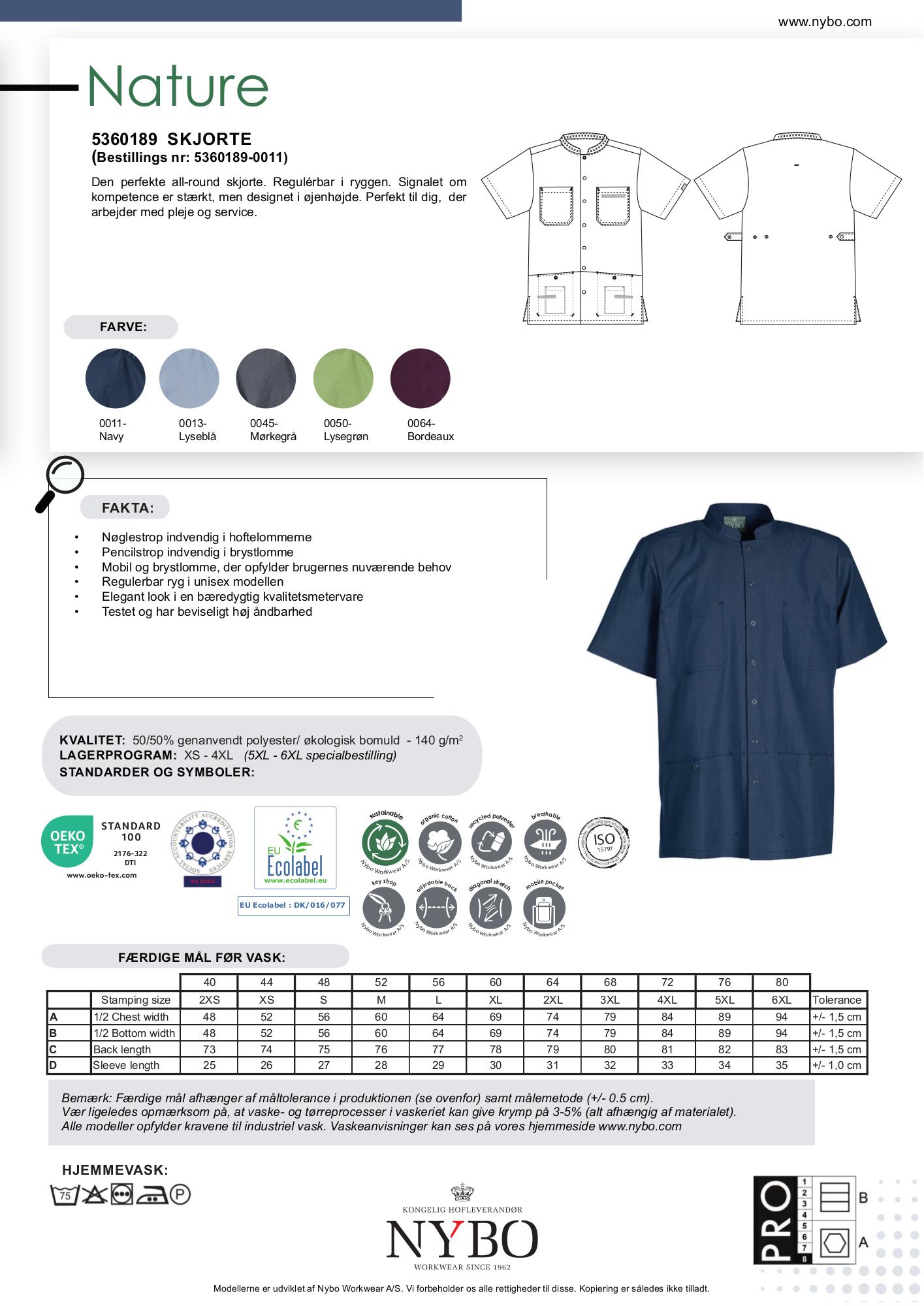 Nybo Navy Unisex Nature Skjorte, Regulérbar i Ryg, Slidstærk
