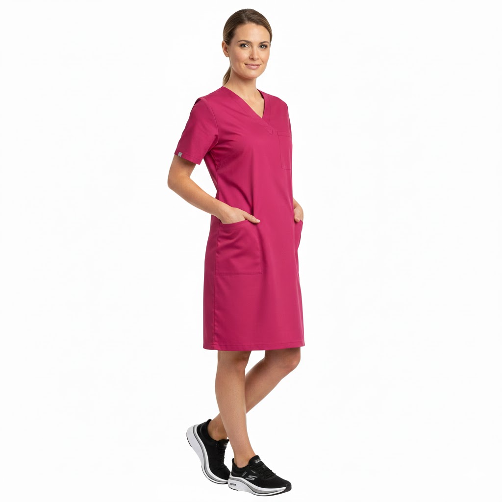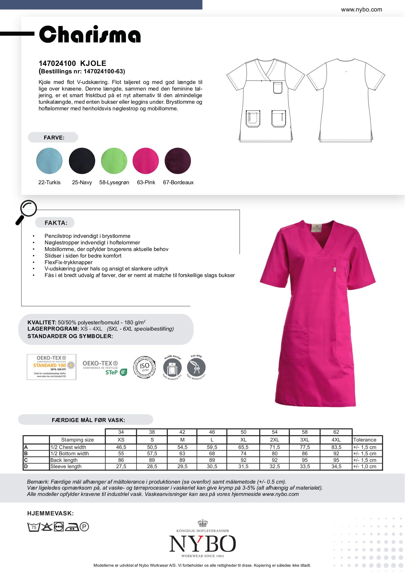 Forny din garderobe med denne Charisma kjole fra Nybo Workwear A/S - et elegant tøjvalg til din arbejdsdag. Kjolen er en taljeret model med rund sprit-hals og når en stilfuld længde lige over knæene. Designet giver et moderne alternativ til tunikaer, perfekt til stilfulde bukser eller leggins. Funktionaliteten er sikret med praktiske brystlomme samt to hoftelommer med nøglestropper og en indbygget mobillomme på højre side.