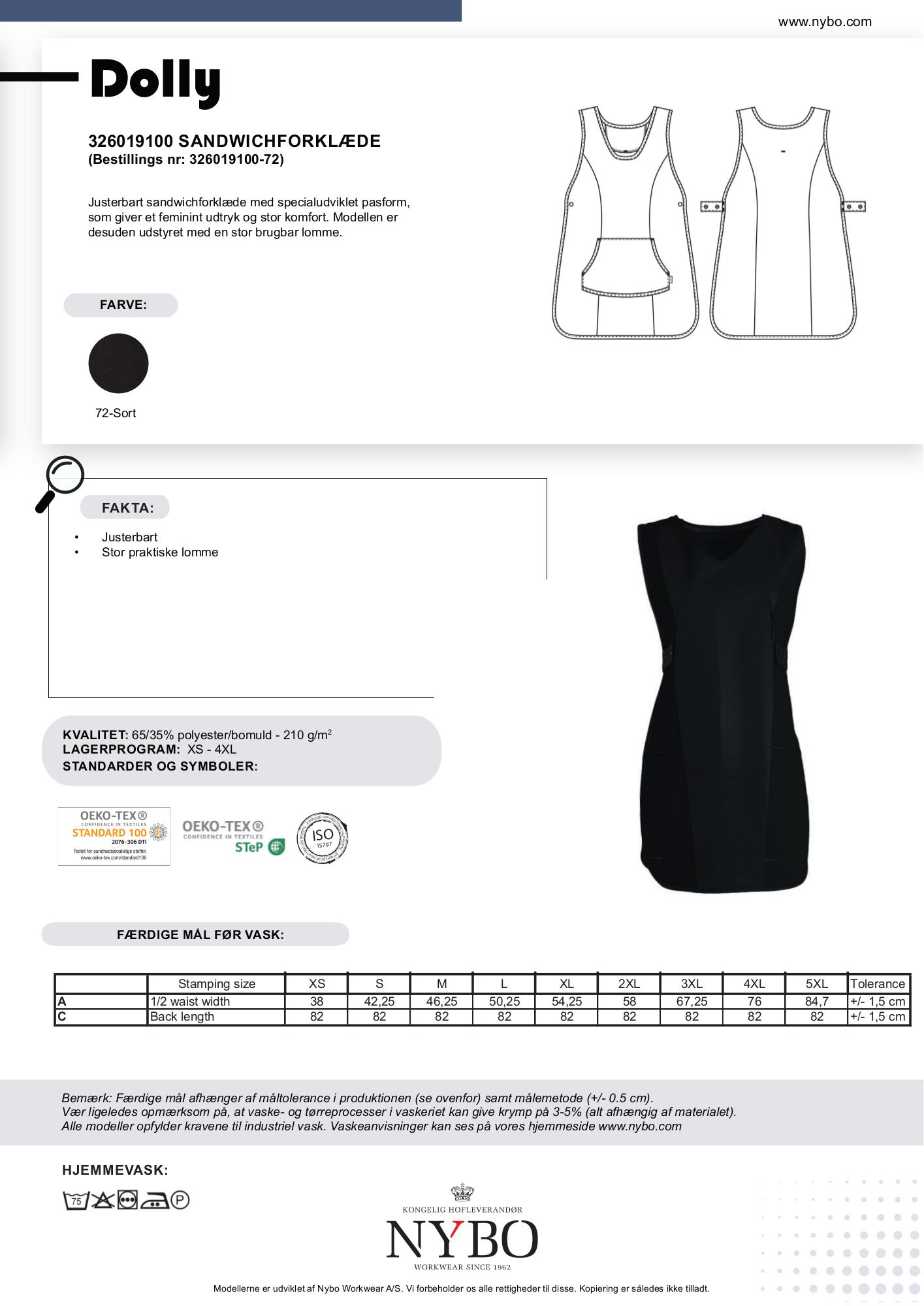 Nybo Sort Dame Dolly Forklæde, Justerbar, Komfort, Stor Lomme