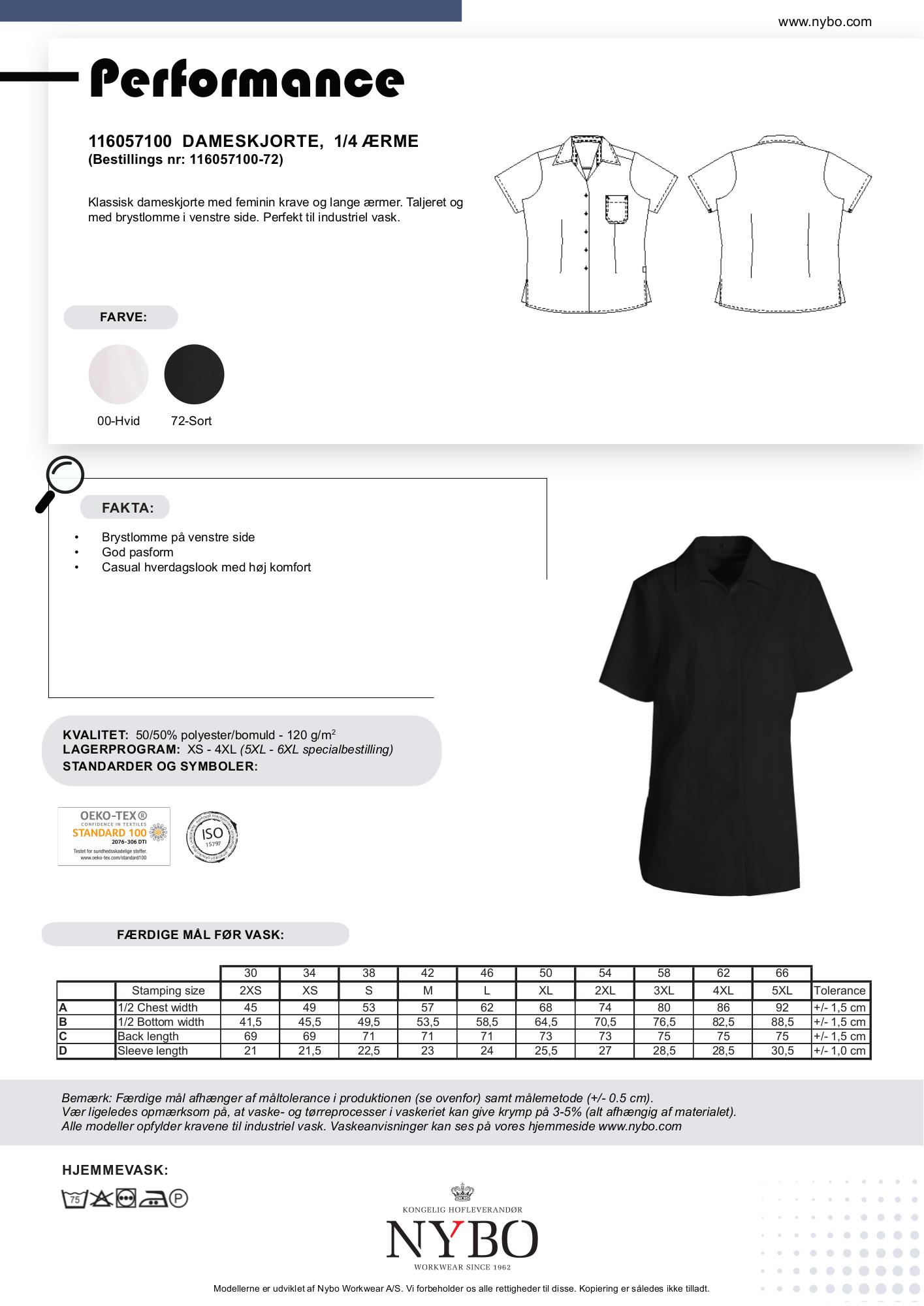Nybo Workwear A/S præsenterer deres elegante sorte dame performance skjorte, som er designet til at kombinere stil og funktionalitet. Denne taljerede kortærmede skjorte er udstyret med en feminin krave og en praktisk brystlomme på venstre side. Skjorten er ideel til industriel vask, hvilket sikrer, at den bevarer sit flotte udseende og komfort, selv efter mange vaske.