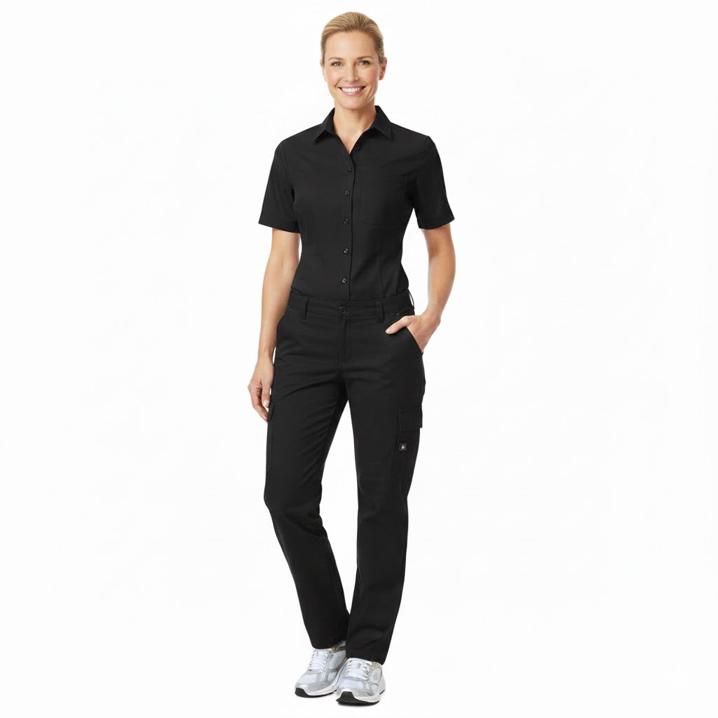 Nybo Sort Dame Performance Skjorte, Kortærmet, Taljeret, Industriel Vask
