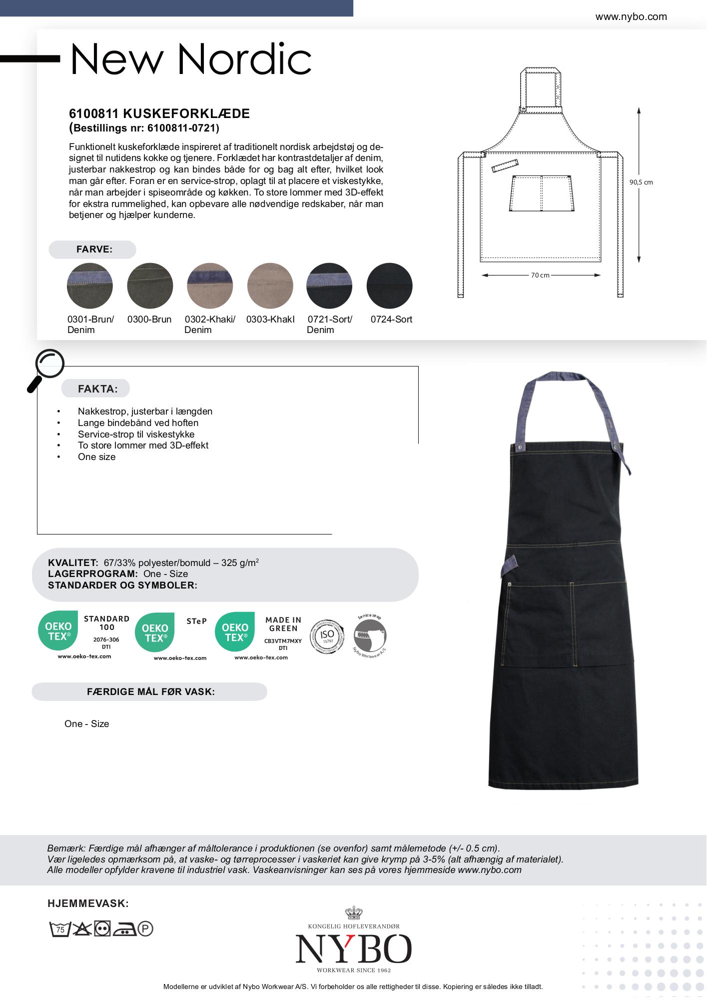 Nybo Workwears New Nordic kollektion henvender sig til kokke og tjenere og tilbyder et bredt udvalg af kokkejakker, bukser, forklæder og en udendørsjakke. Kollektionen trækker inspiration fra vores nordiske natur og arv, koblet med minimalistisk design. Materialerne spænder fra langtidsholdbar polyester/bomuld til genanvendt polyester og økologisk bomuld, hvilket gør denne kollektion både innovativ og bæredygtig. Farverne inkluderer frisk hvid, khaki, brun/grønne nuancer samt dyb sort, som alle udstråler det rå nordiske miljø.
