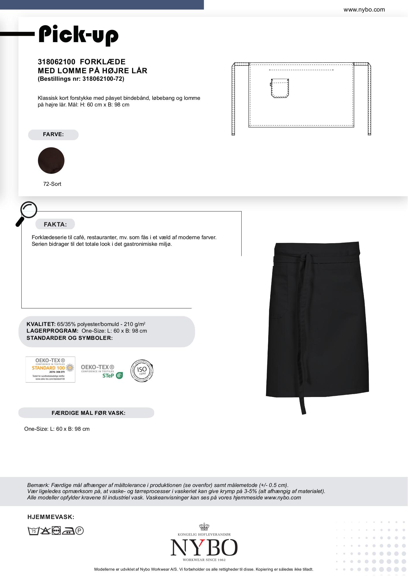 Oplev det klassiske Pick-Up forklæde fra Nybo Workwear, der kombinerer både stil og funktionalitet i ét produkt. Dette forklæde er designet i en tidløs sort farve og præsenterer et stilrent kort forstykke med påsyet bindebånd og løbebang for optimal tilpasning. For ekstra bekvemmelighed er der en praktisk lomme placeret på højre lår, som gør det lettere at have dine væsentlige redskaber ved hånden. Forklædet har målene 60 cm i højden og 98 cm i bredden og er fremstillet af en holdbar blanding af 65% polyester og 35% bomuld, som sikrer langvarig brug i høj kvalitet.
